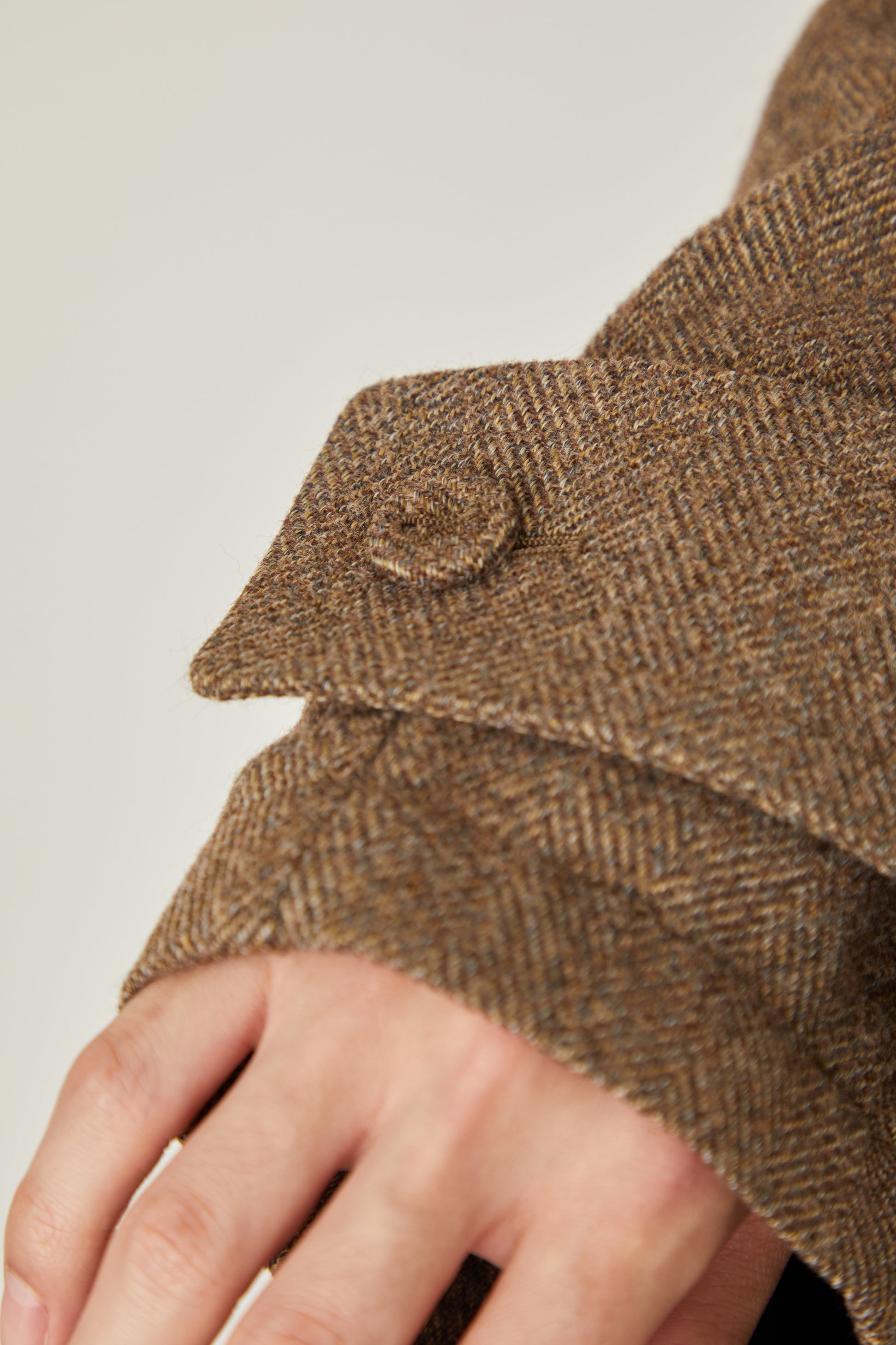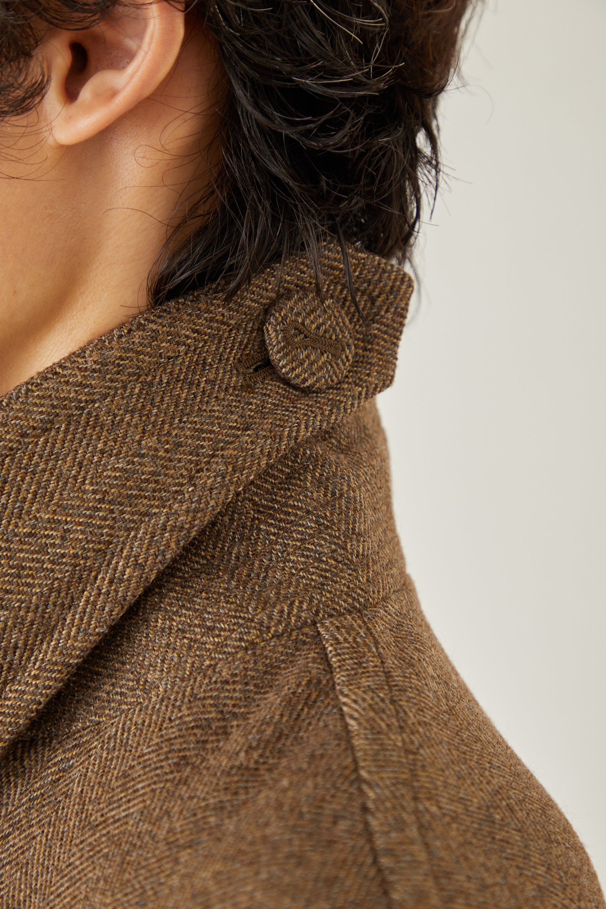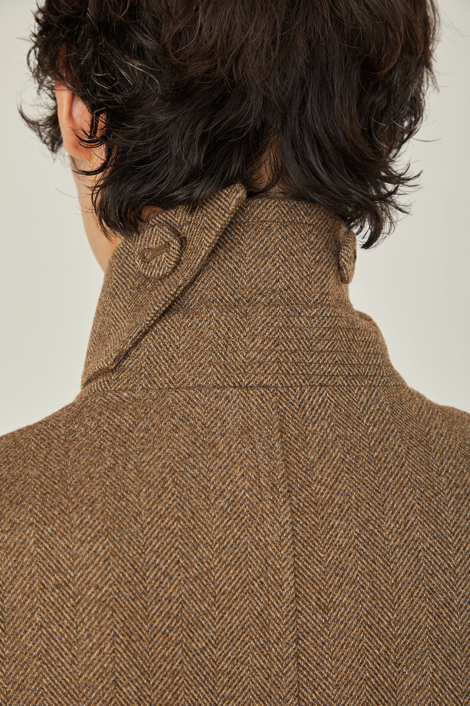 襟の形状、ポケット、内側の仕様、ステッチに⾄る細部まで、