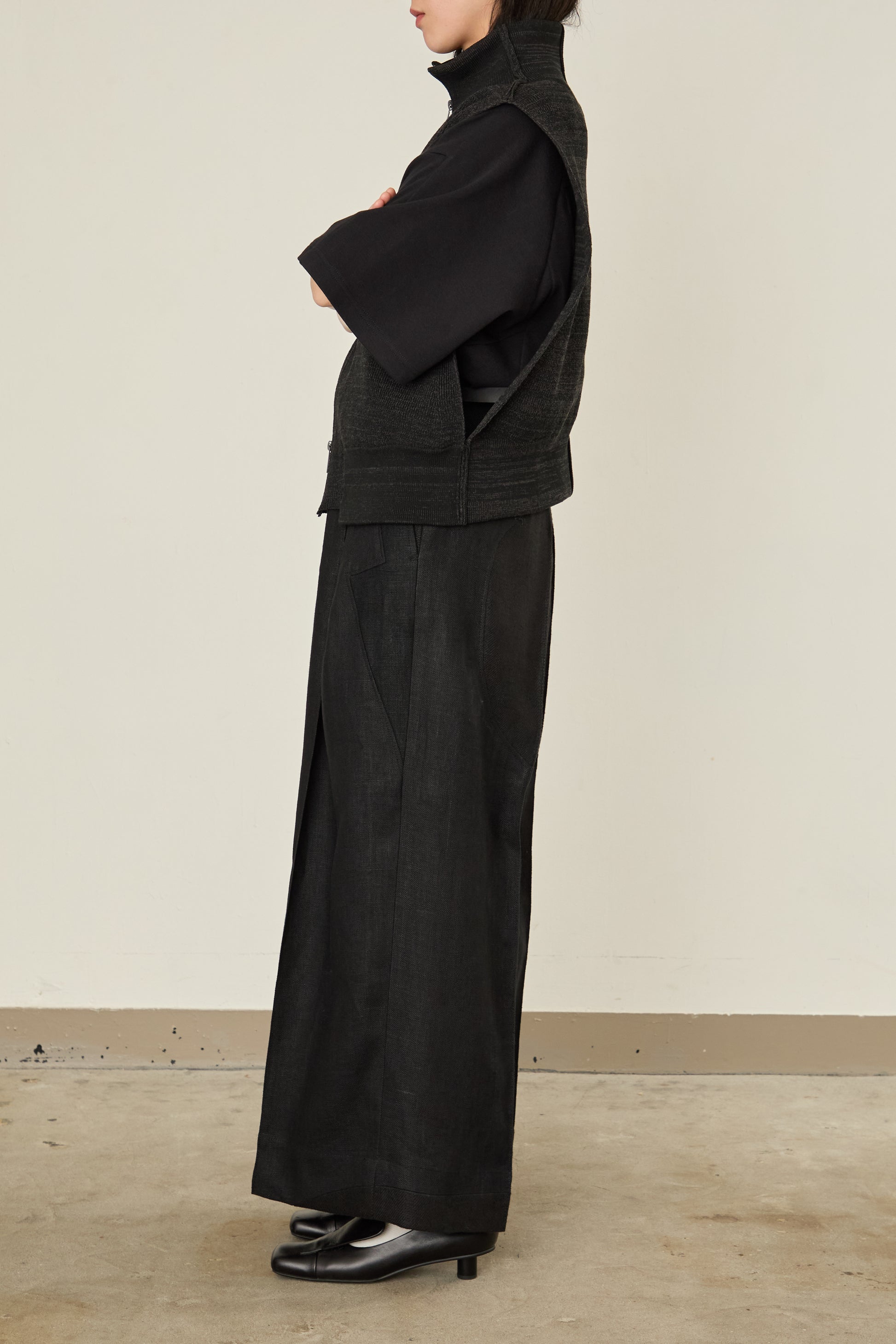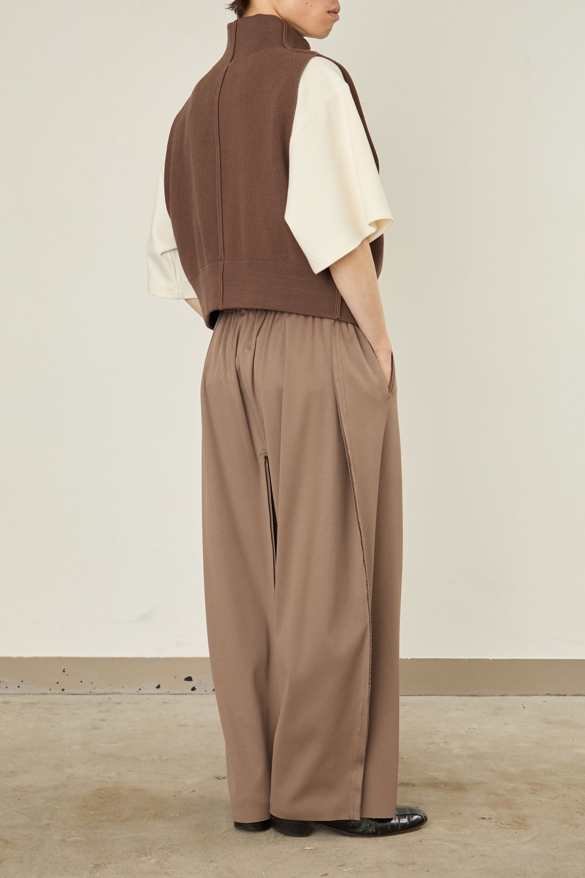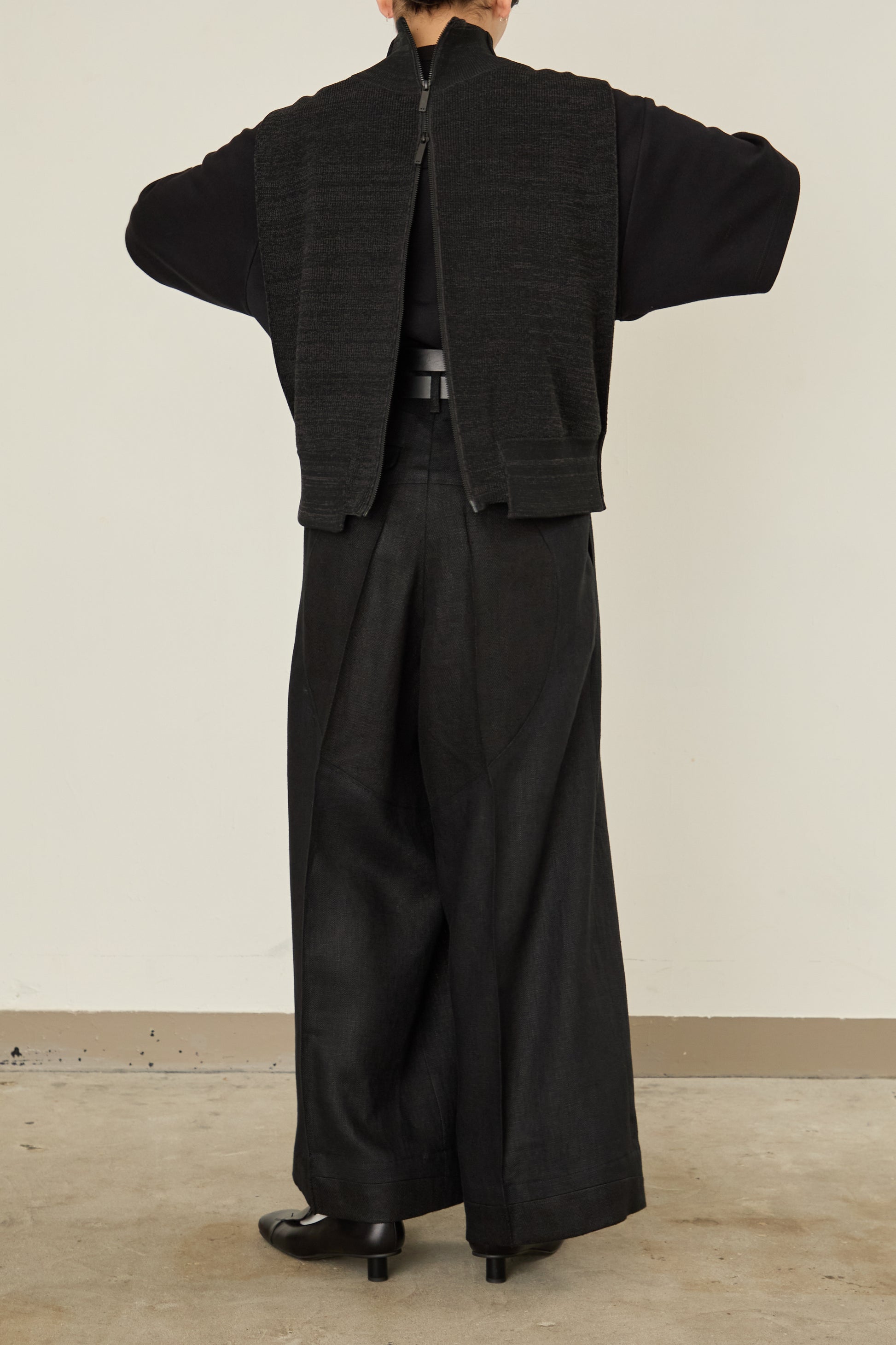 前後をスイッチして、着用可能となるドライバーズニット / ベスト。