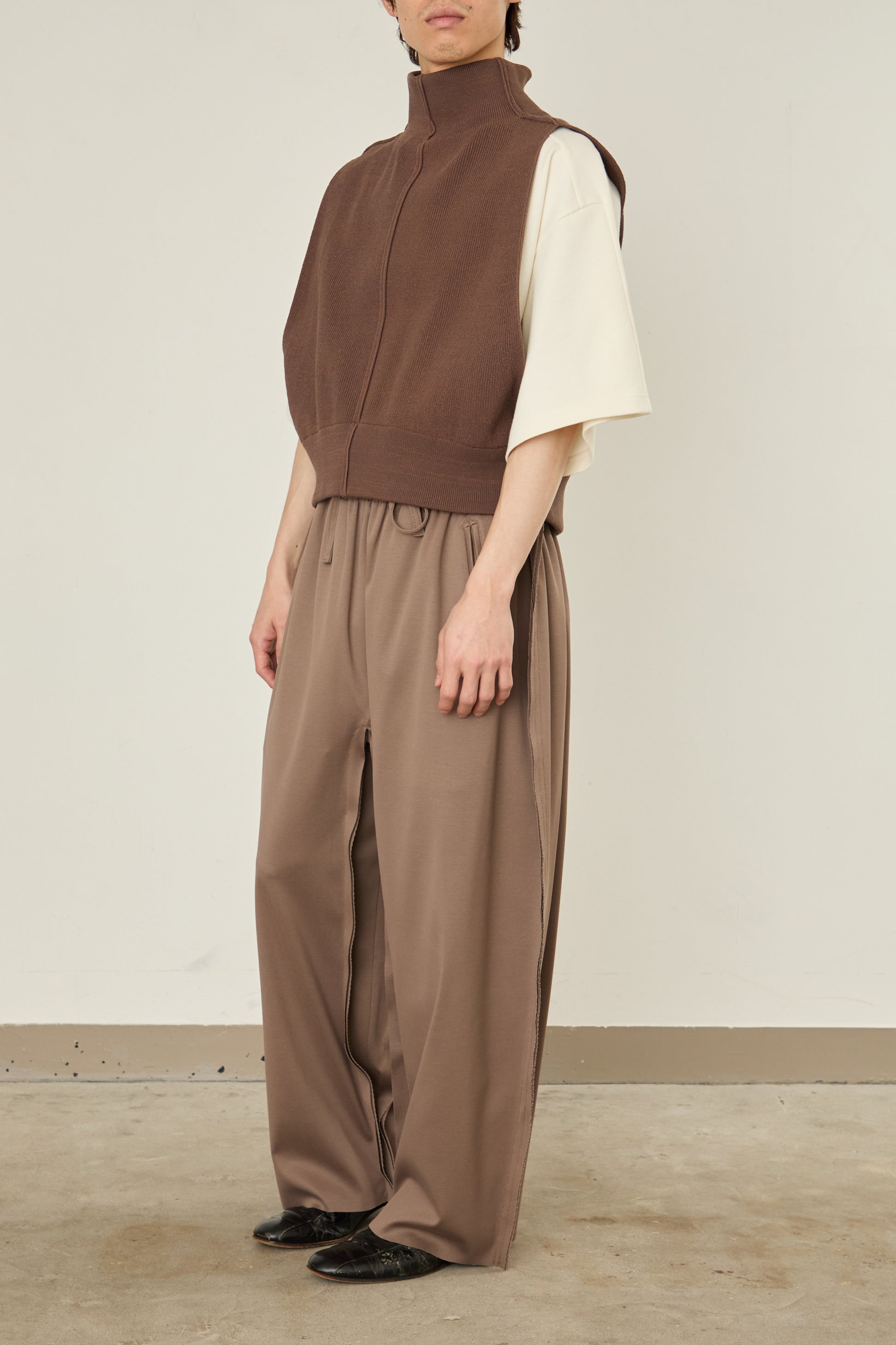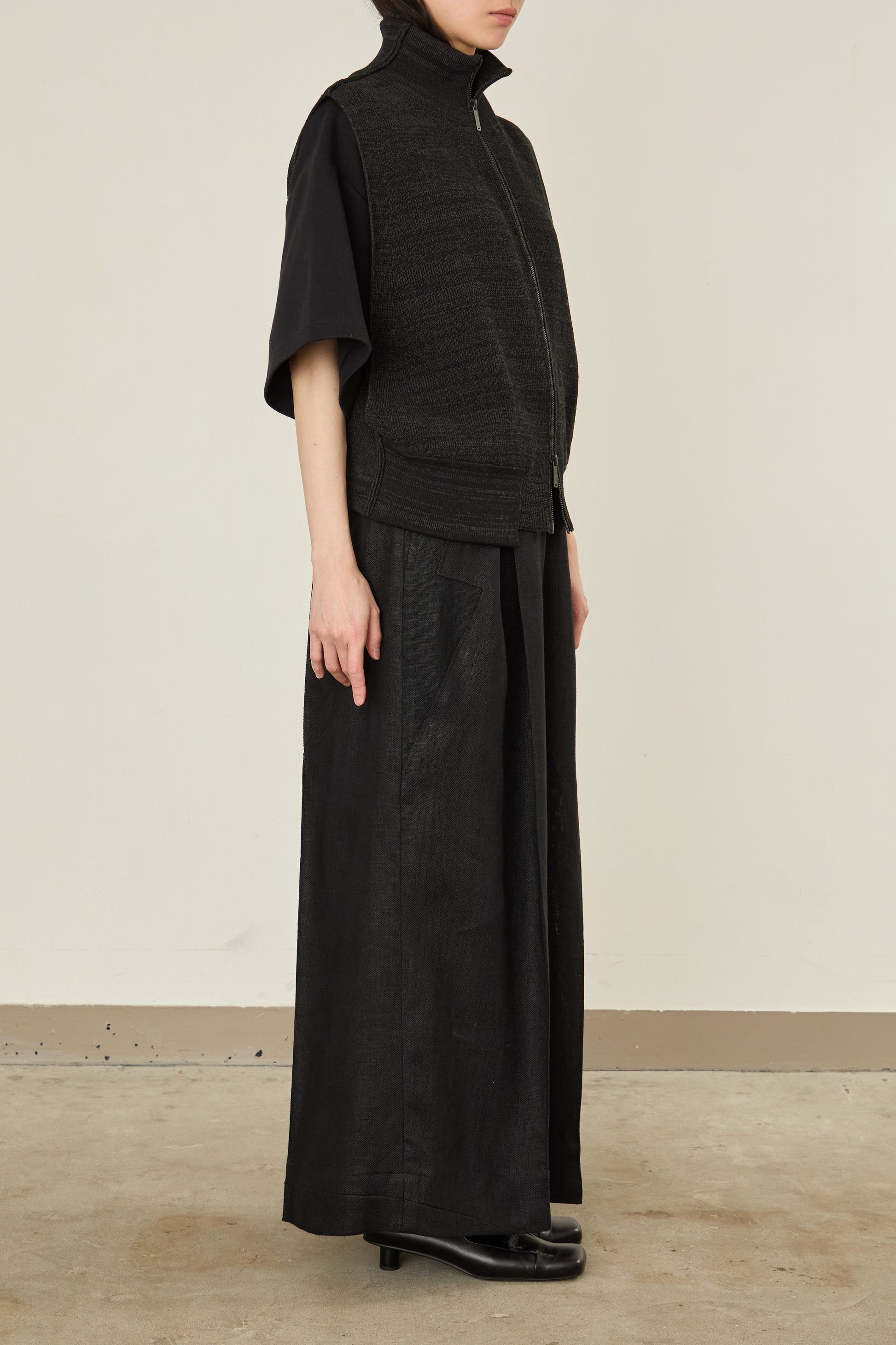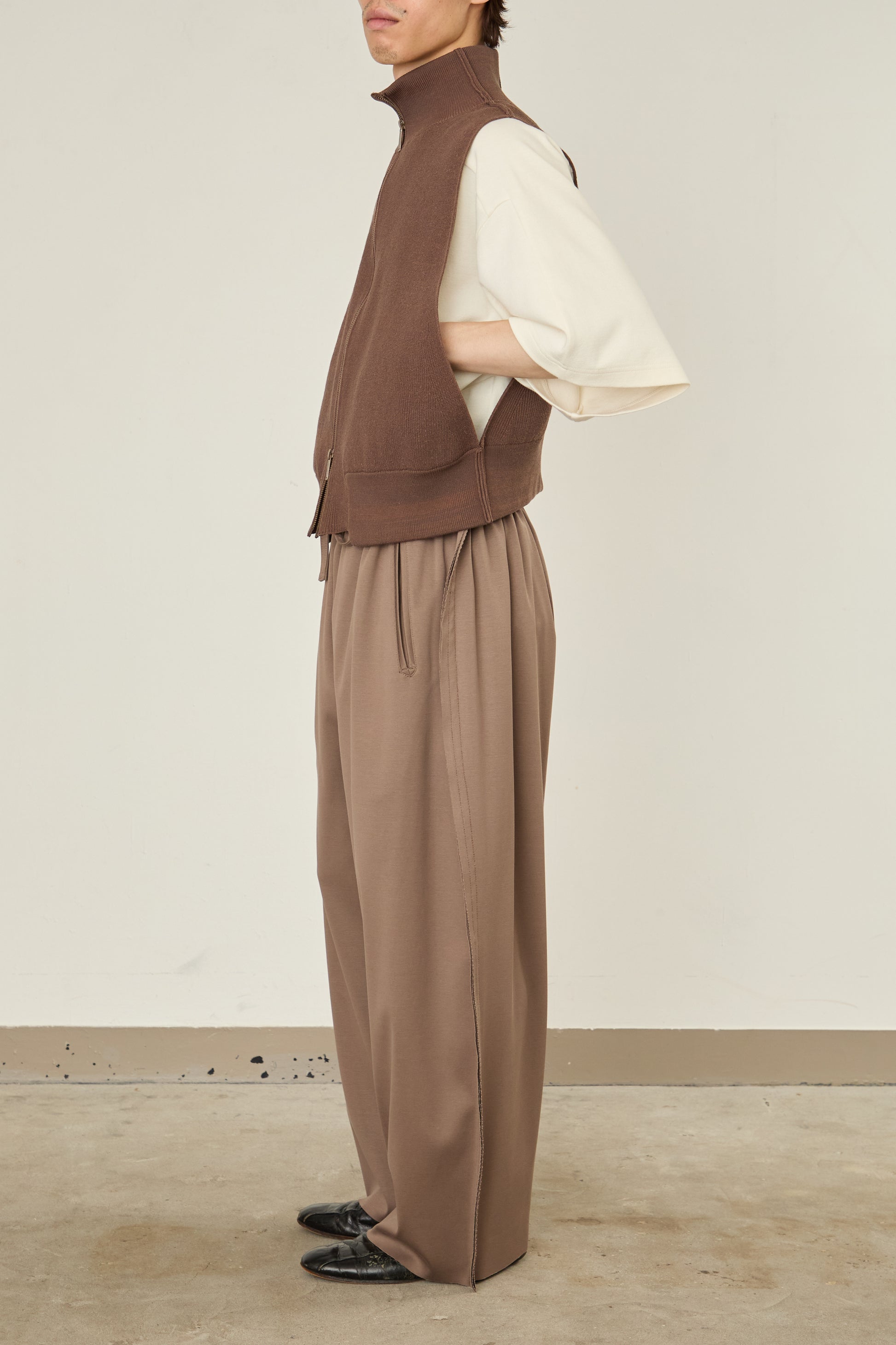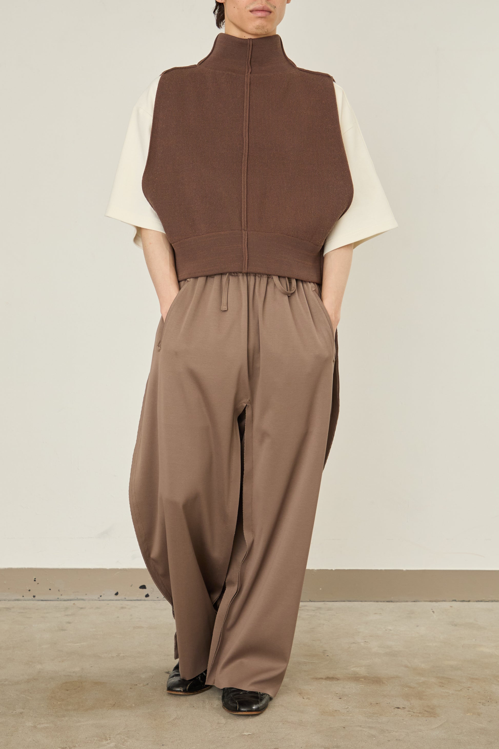 前後をスイッチして、着用可能となるドライバーズニット / ベスト。