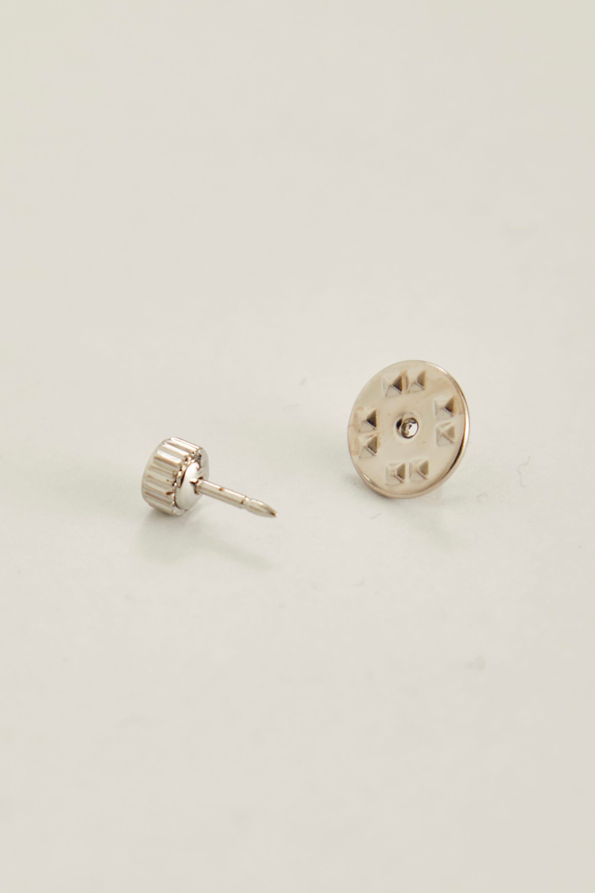 すべての商品に、 時計のリューズ型のオリジナルピンズ