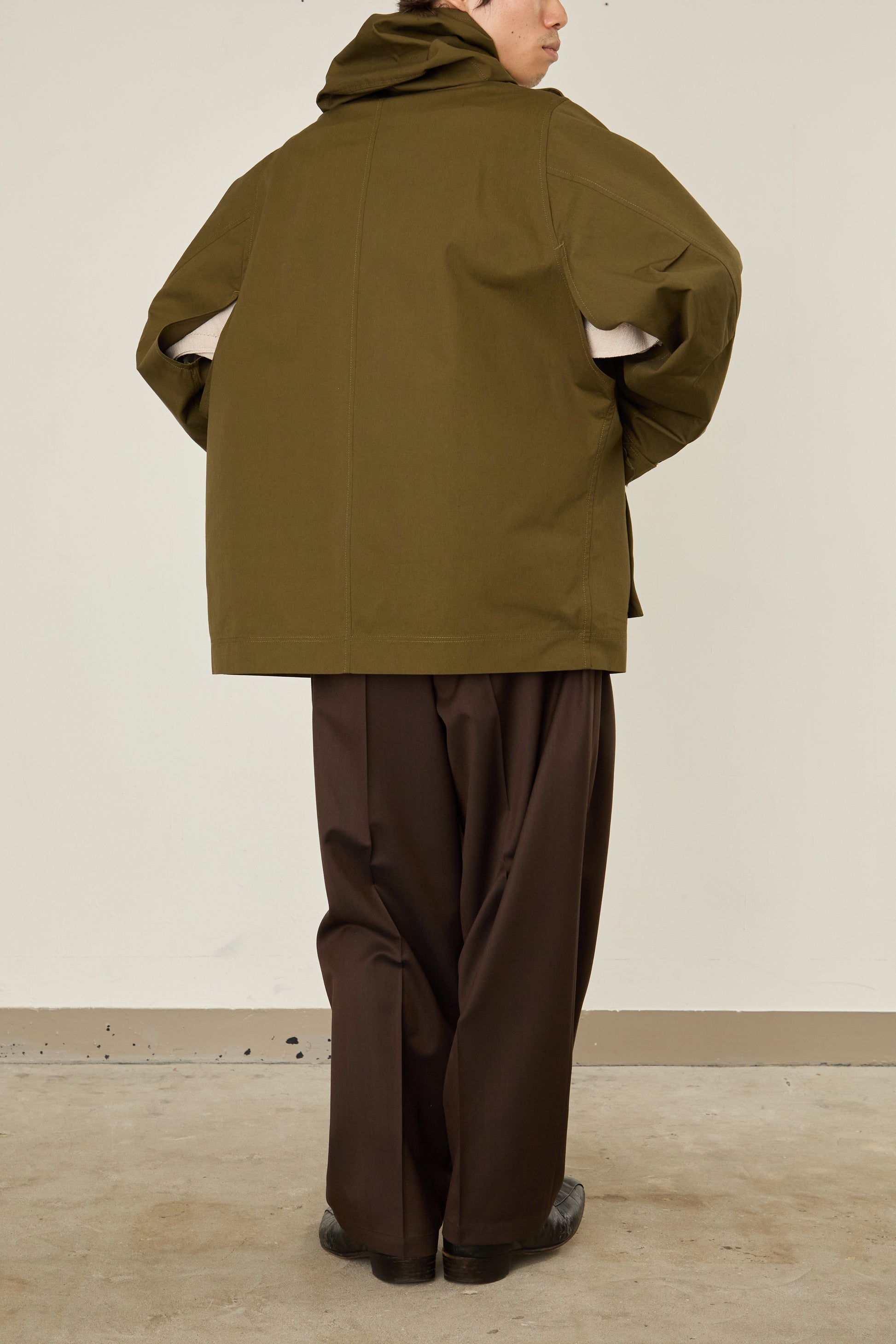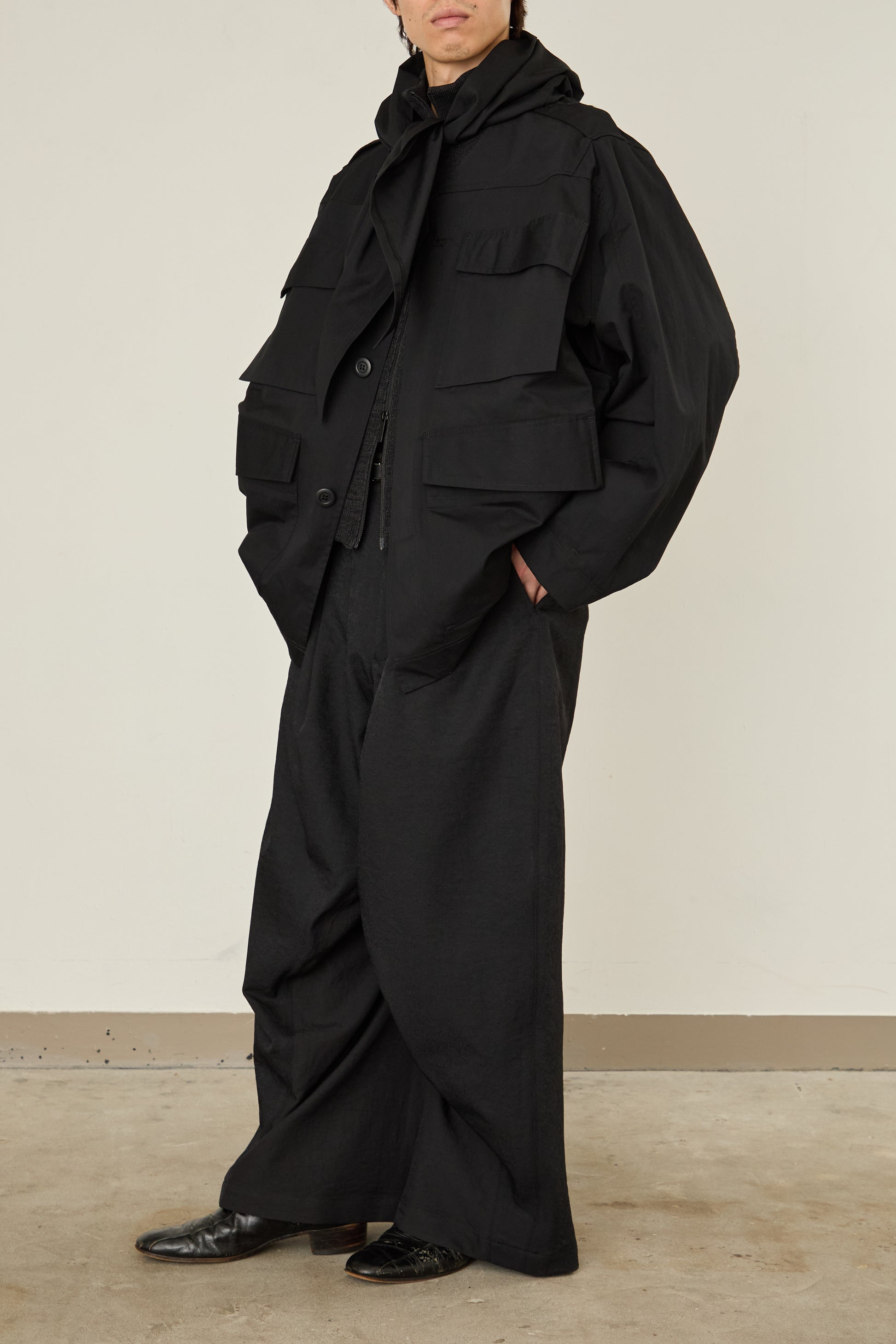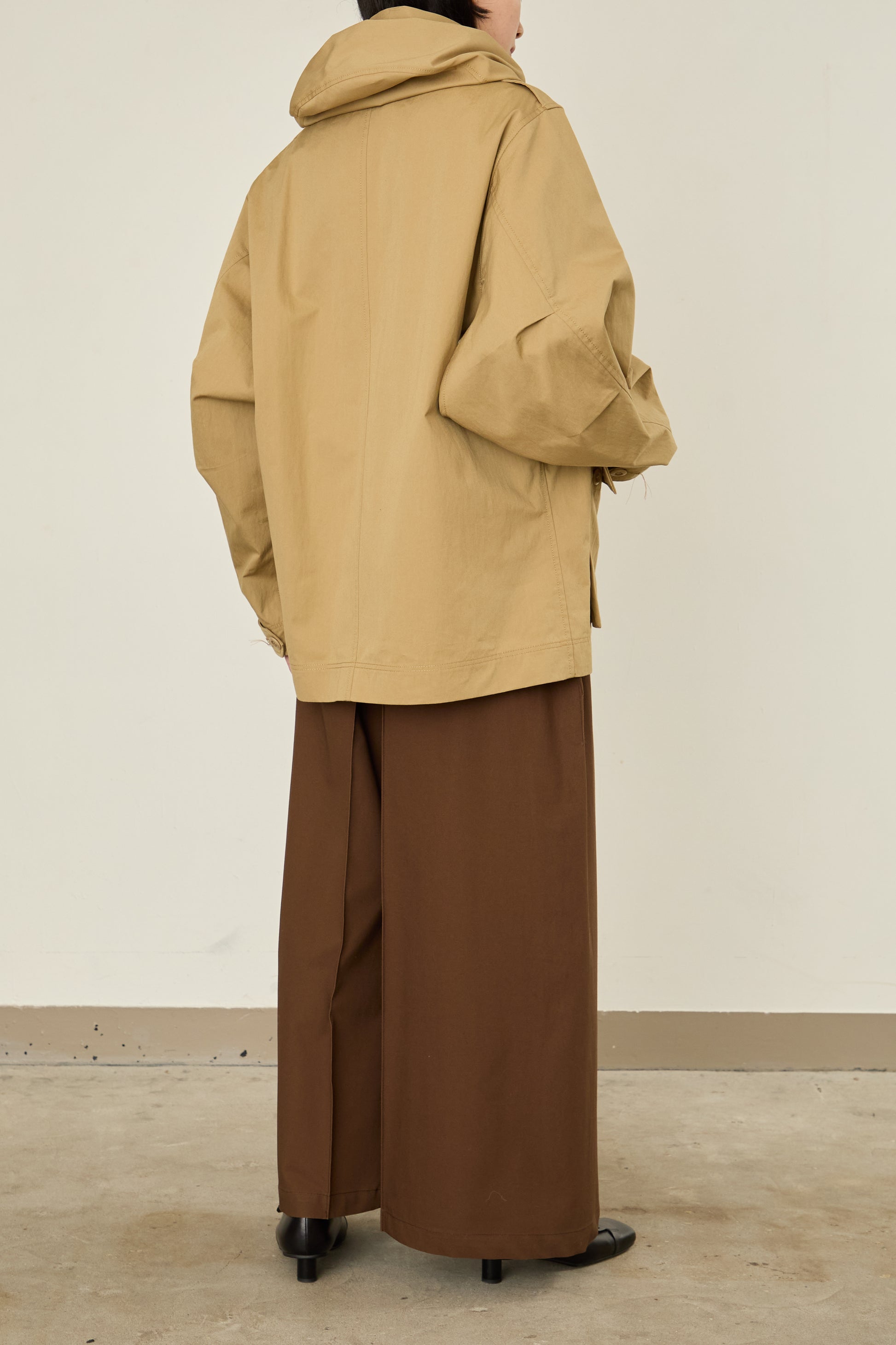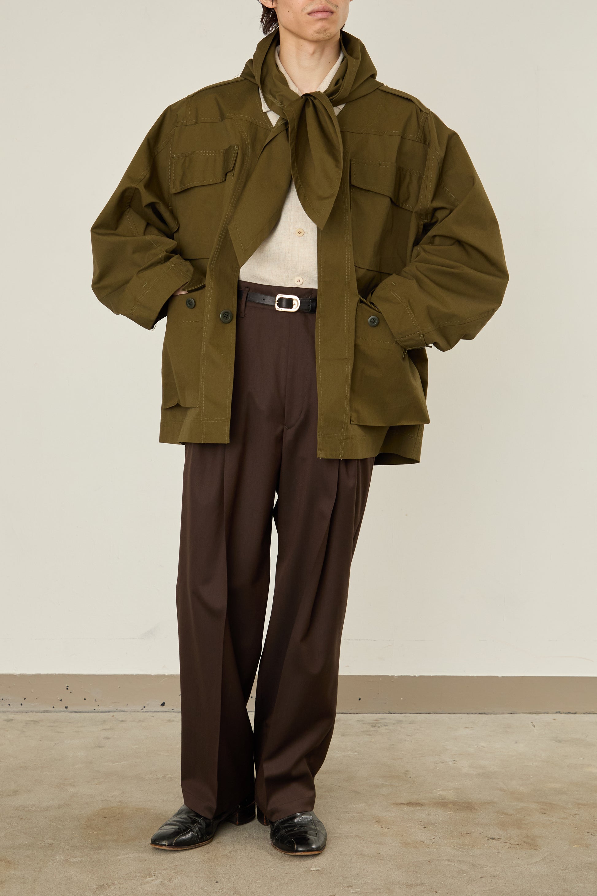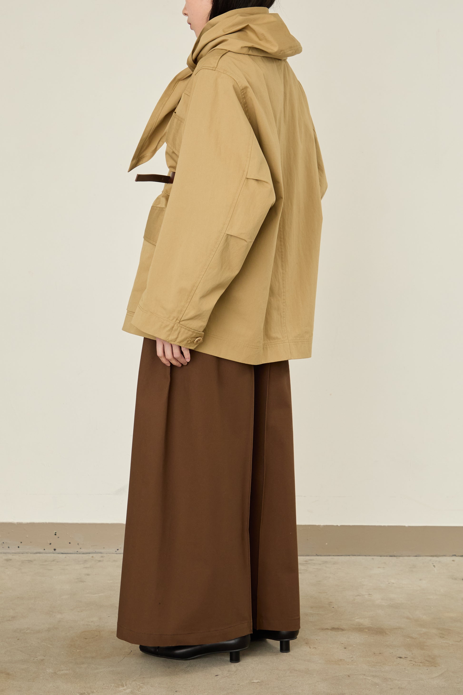 フード型ストールがドッキングされた、2WAYミリタリージャケット。