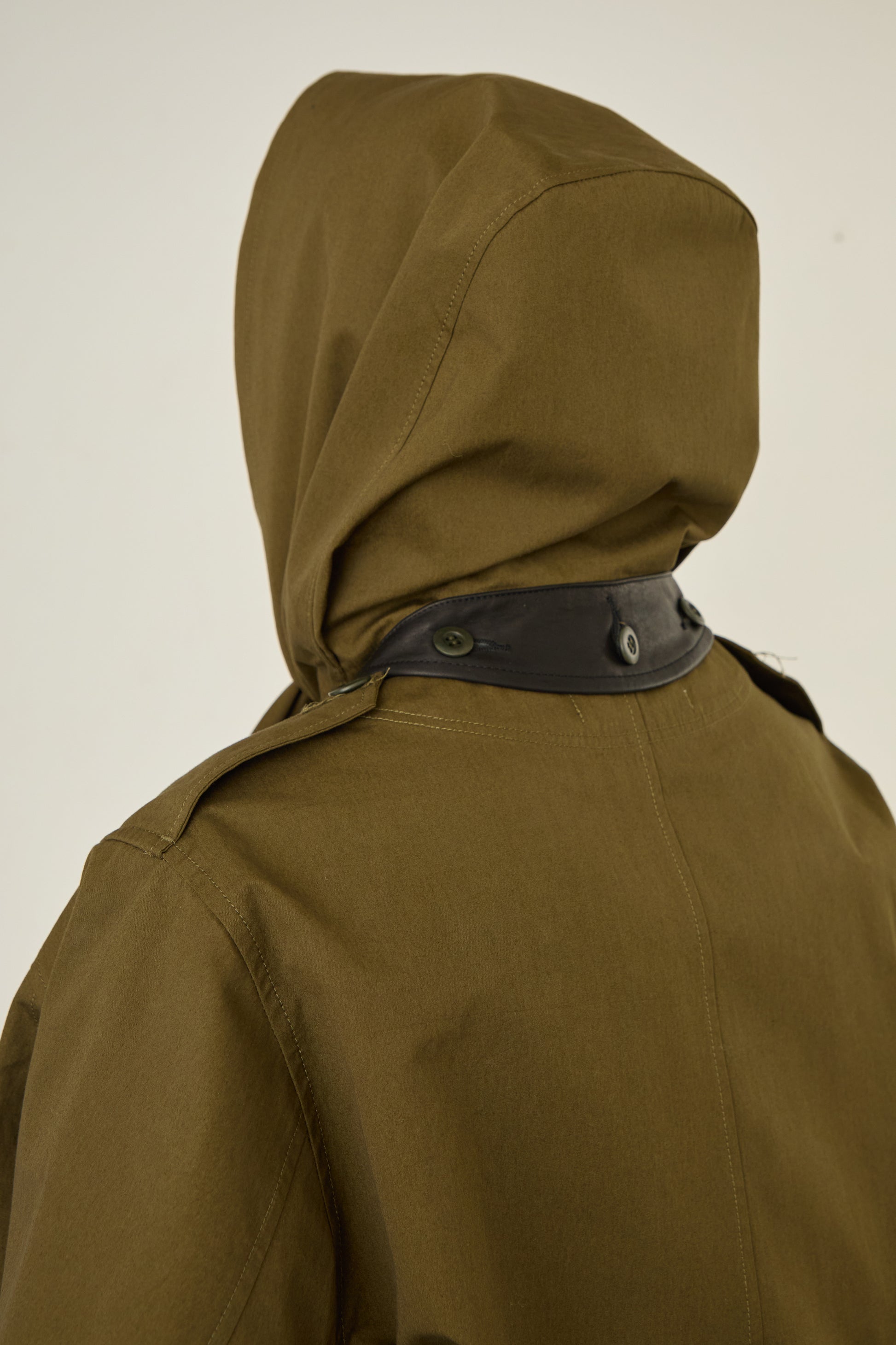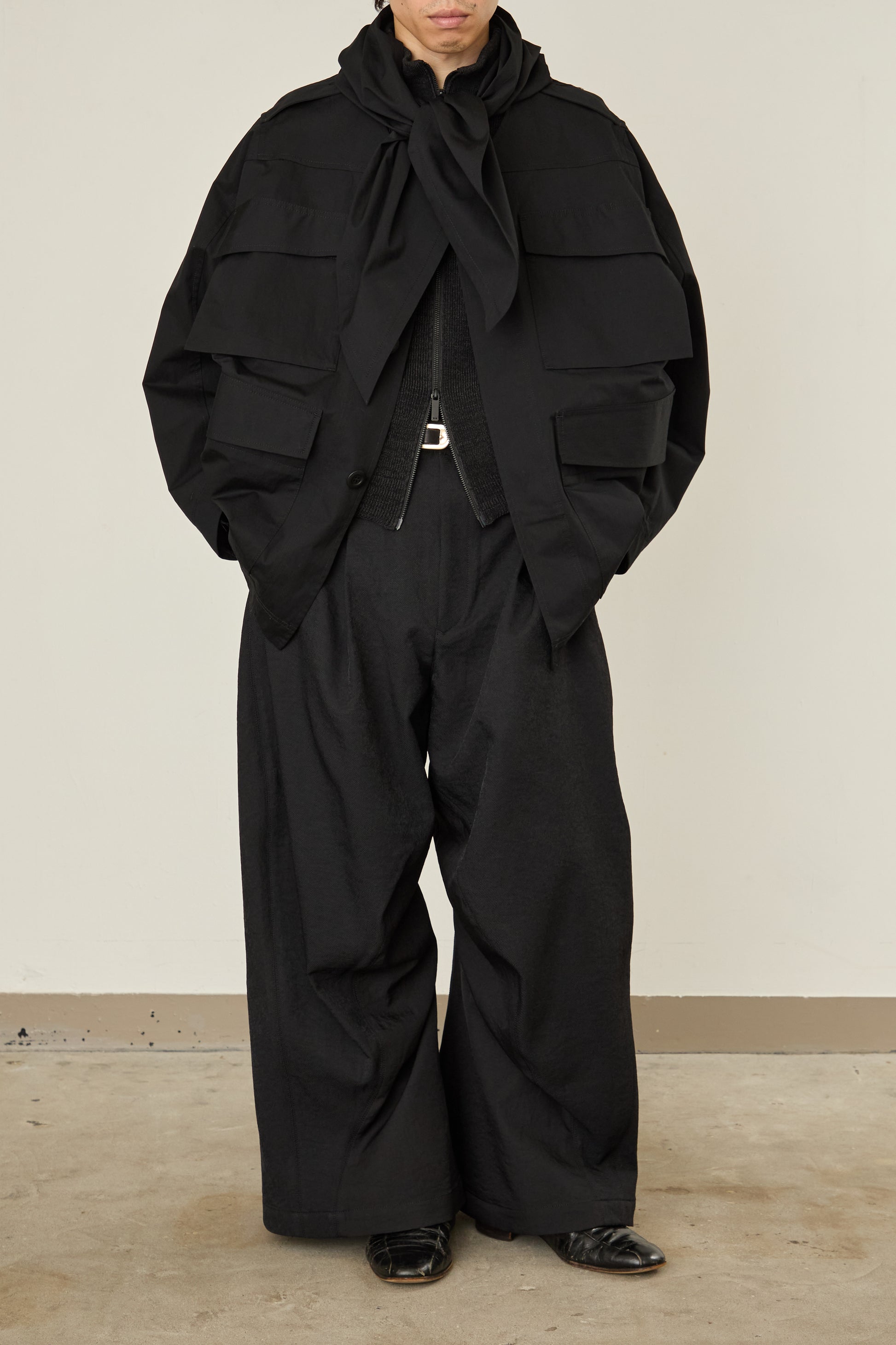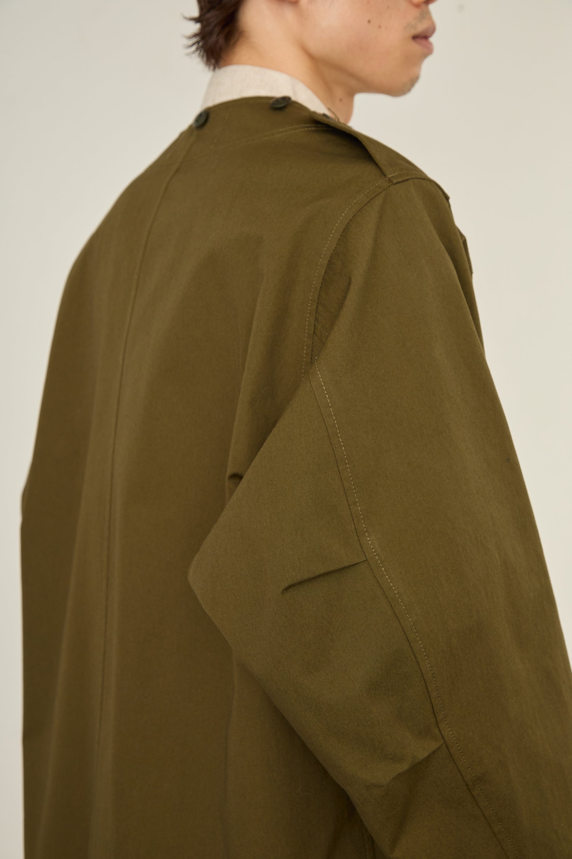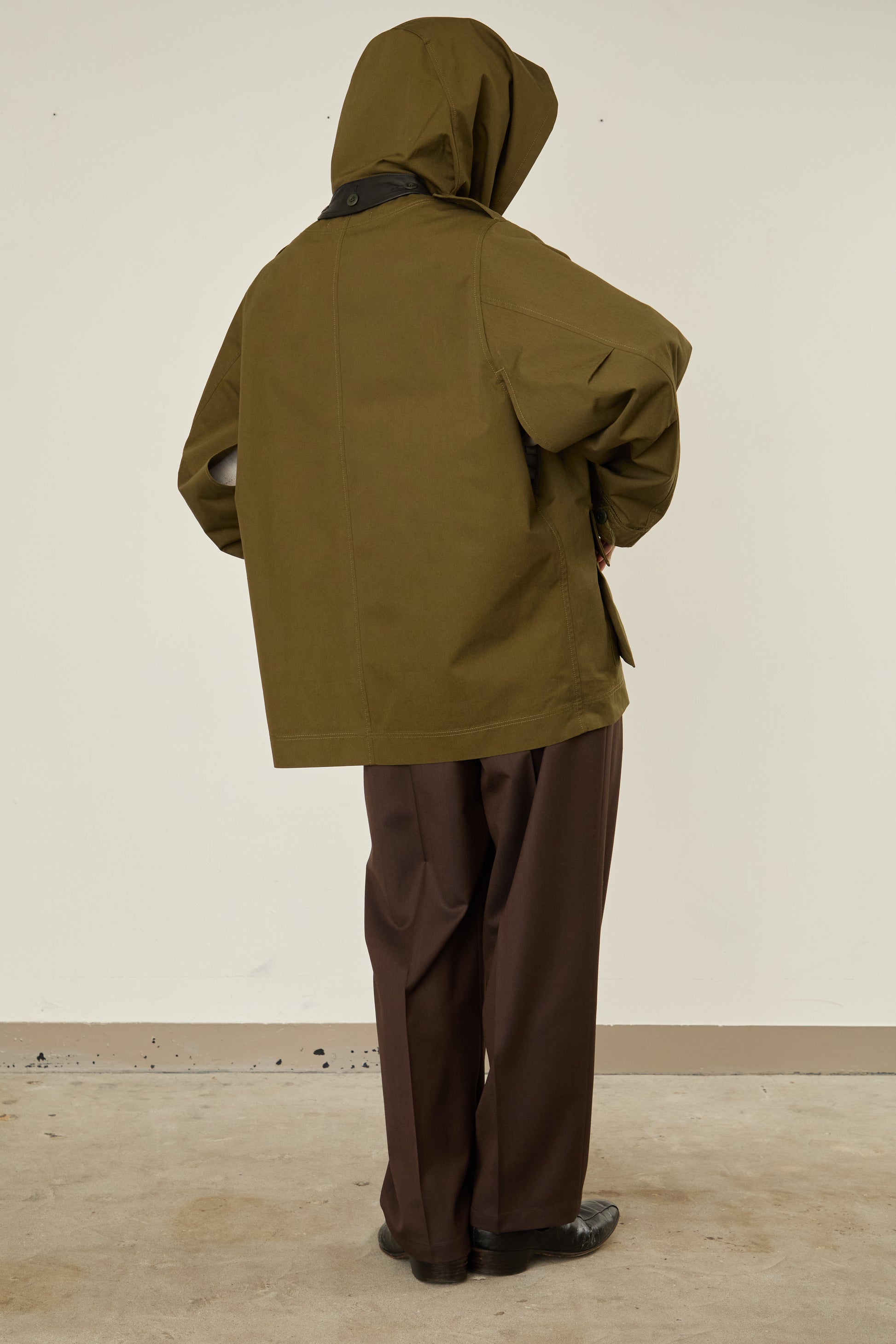 フード型ストールがドッキングされた、2WAYミリタリージャケット。