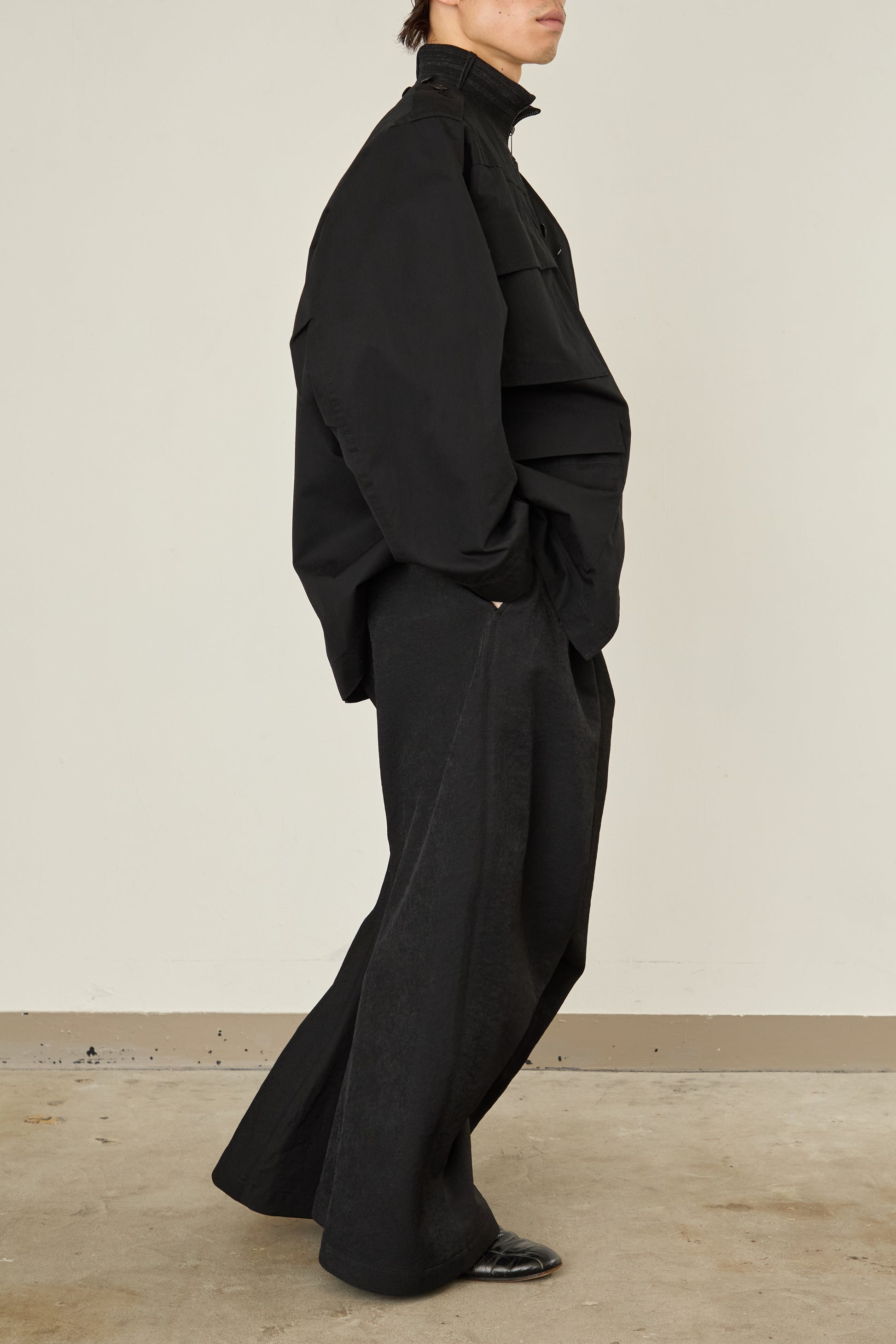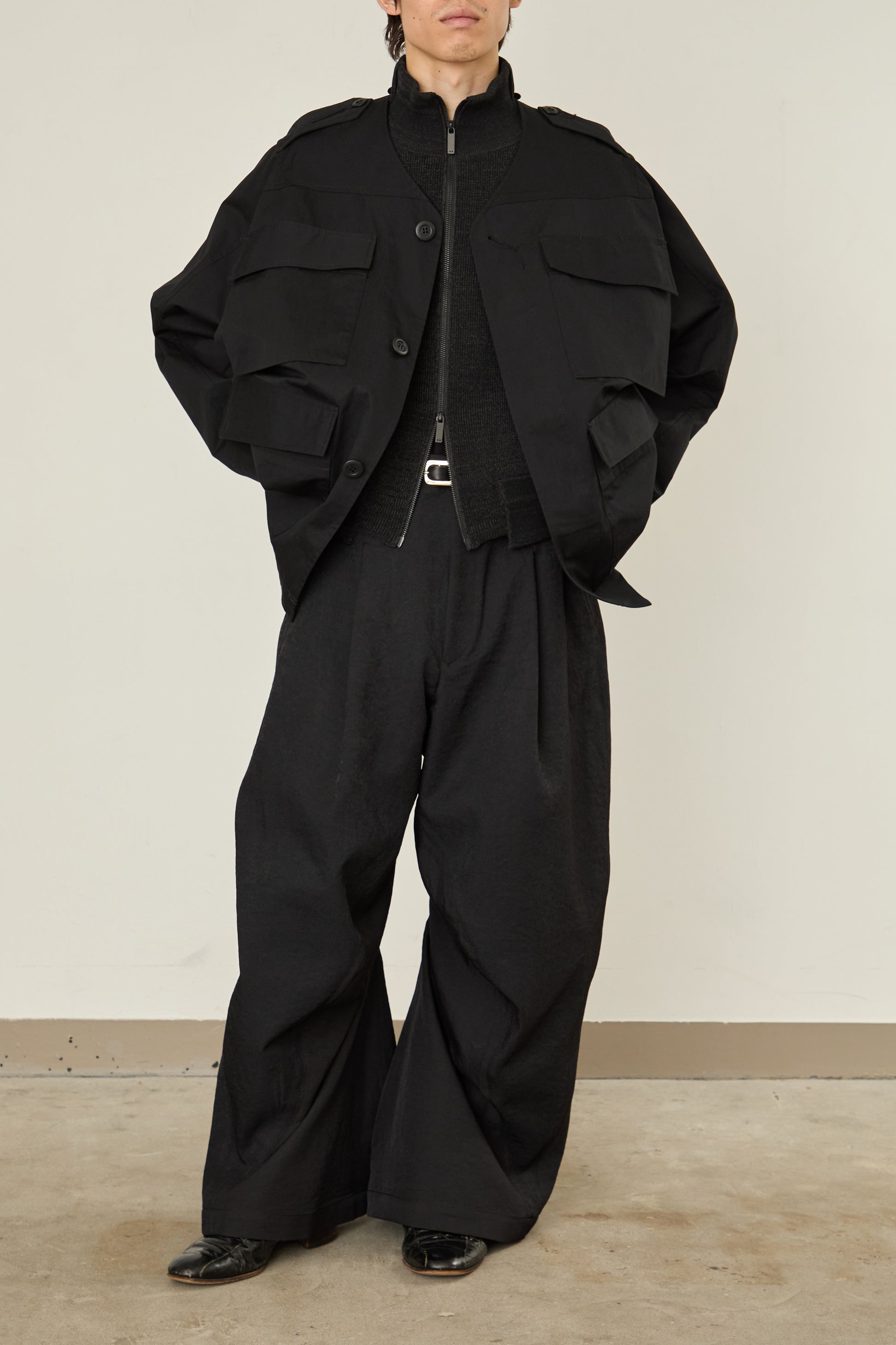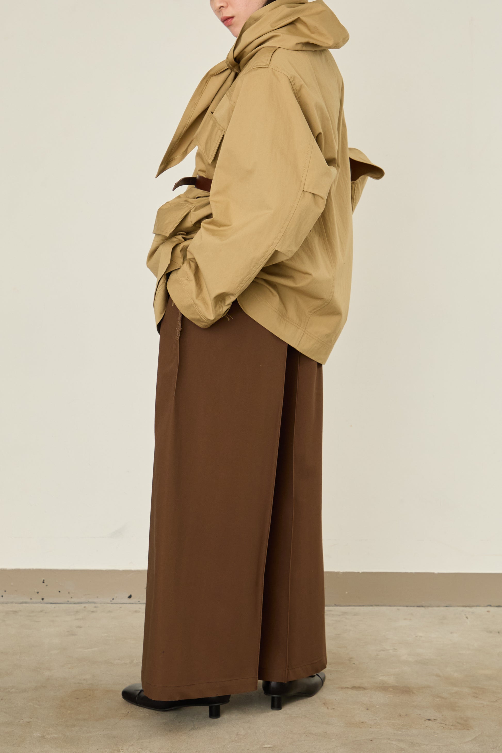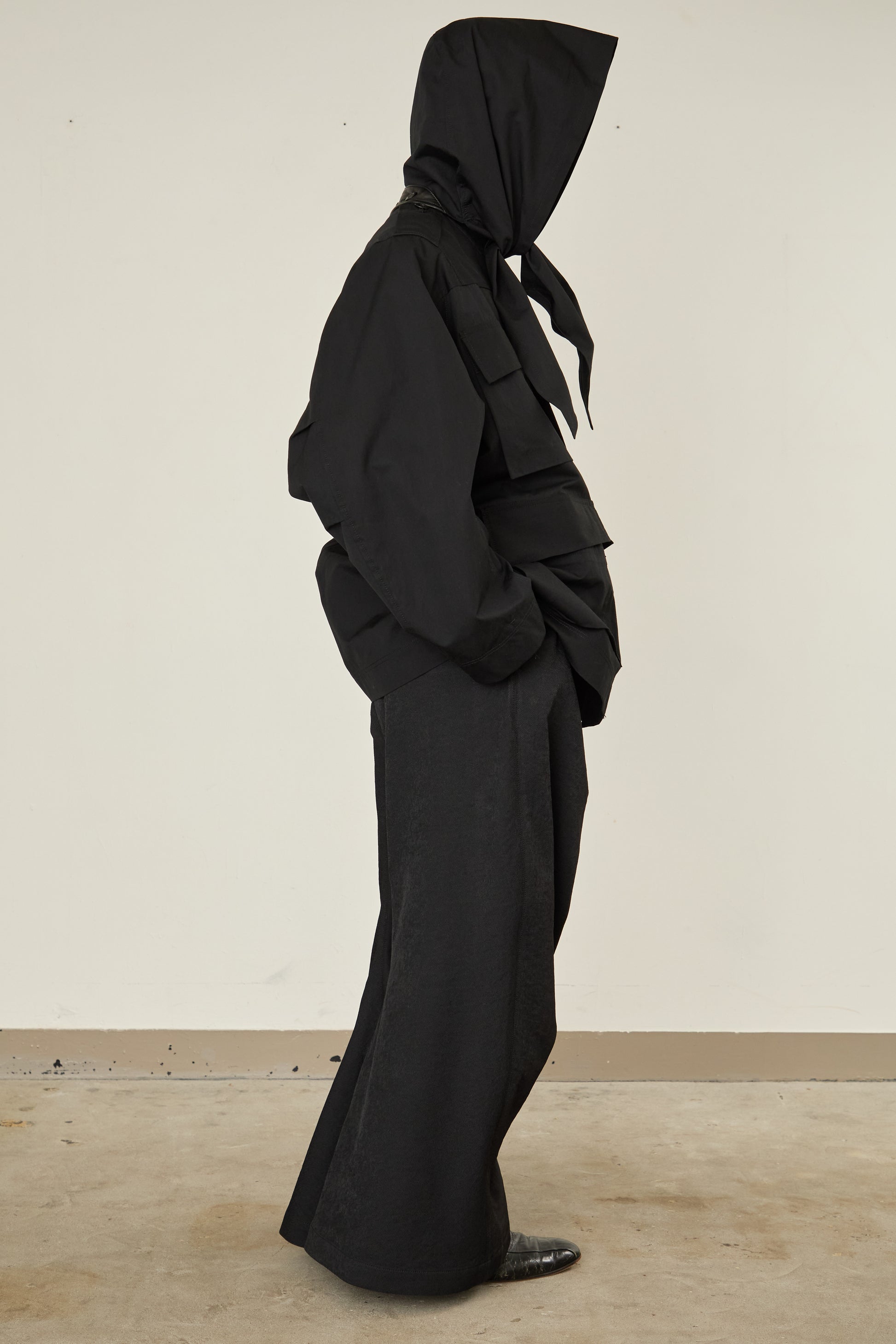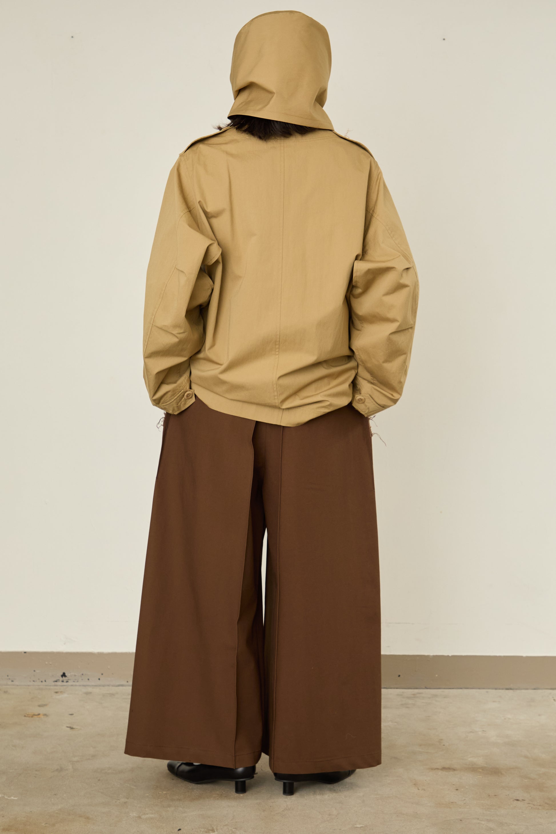 フード型ストールがドッキングされた、2WAYミリタリージャケット。