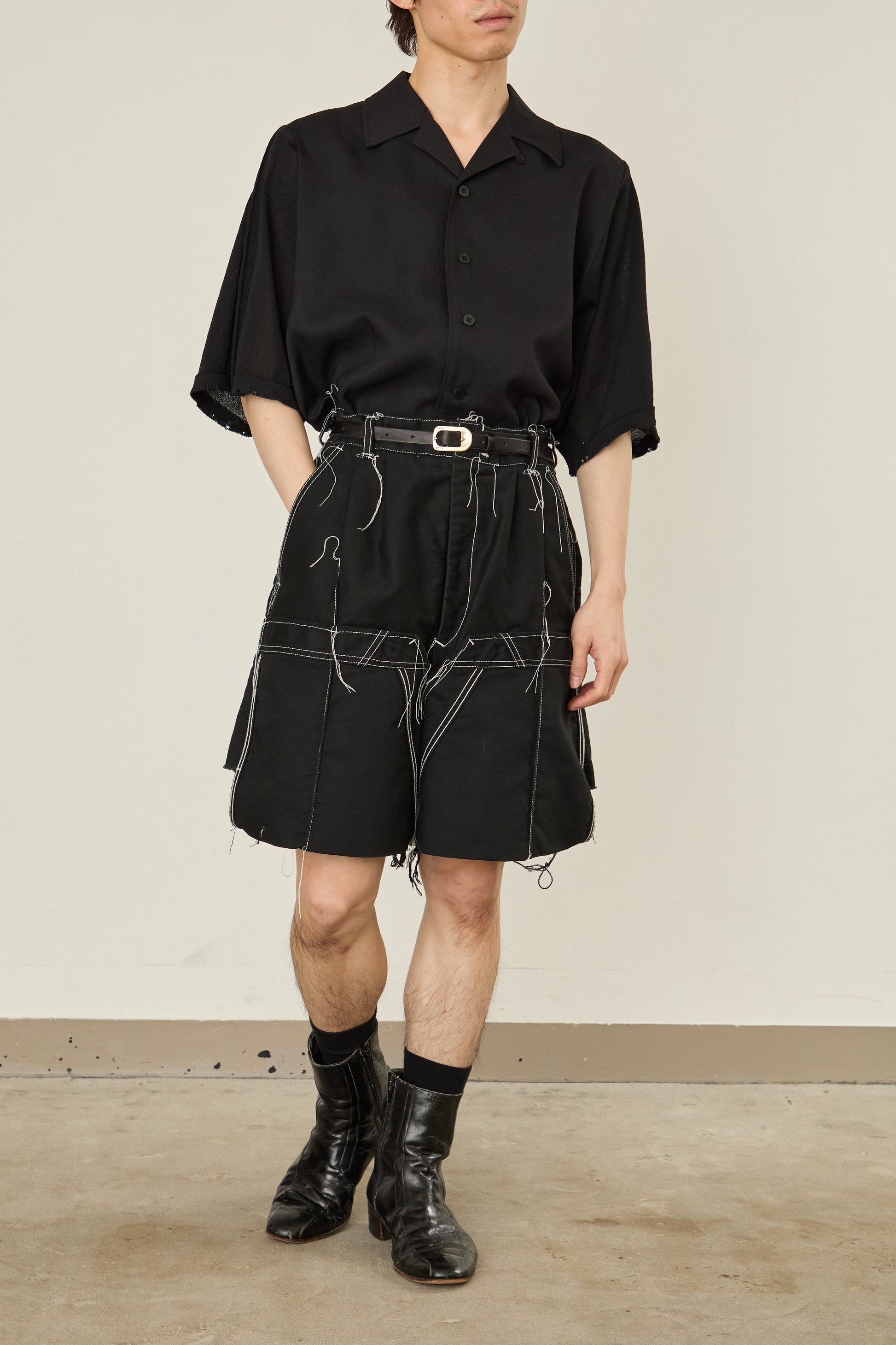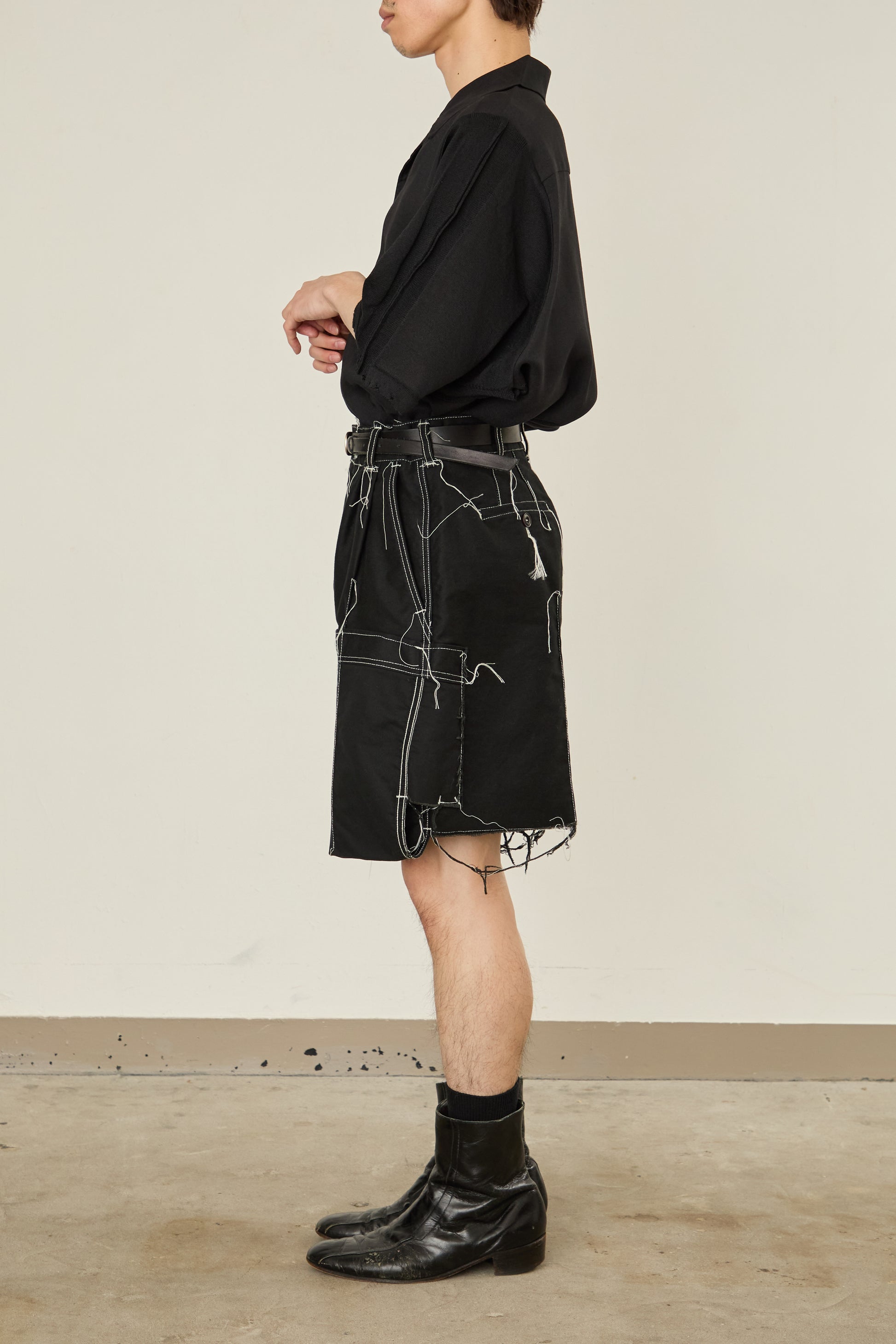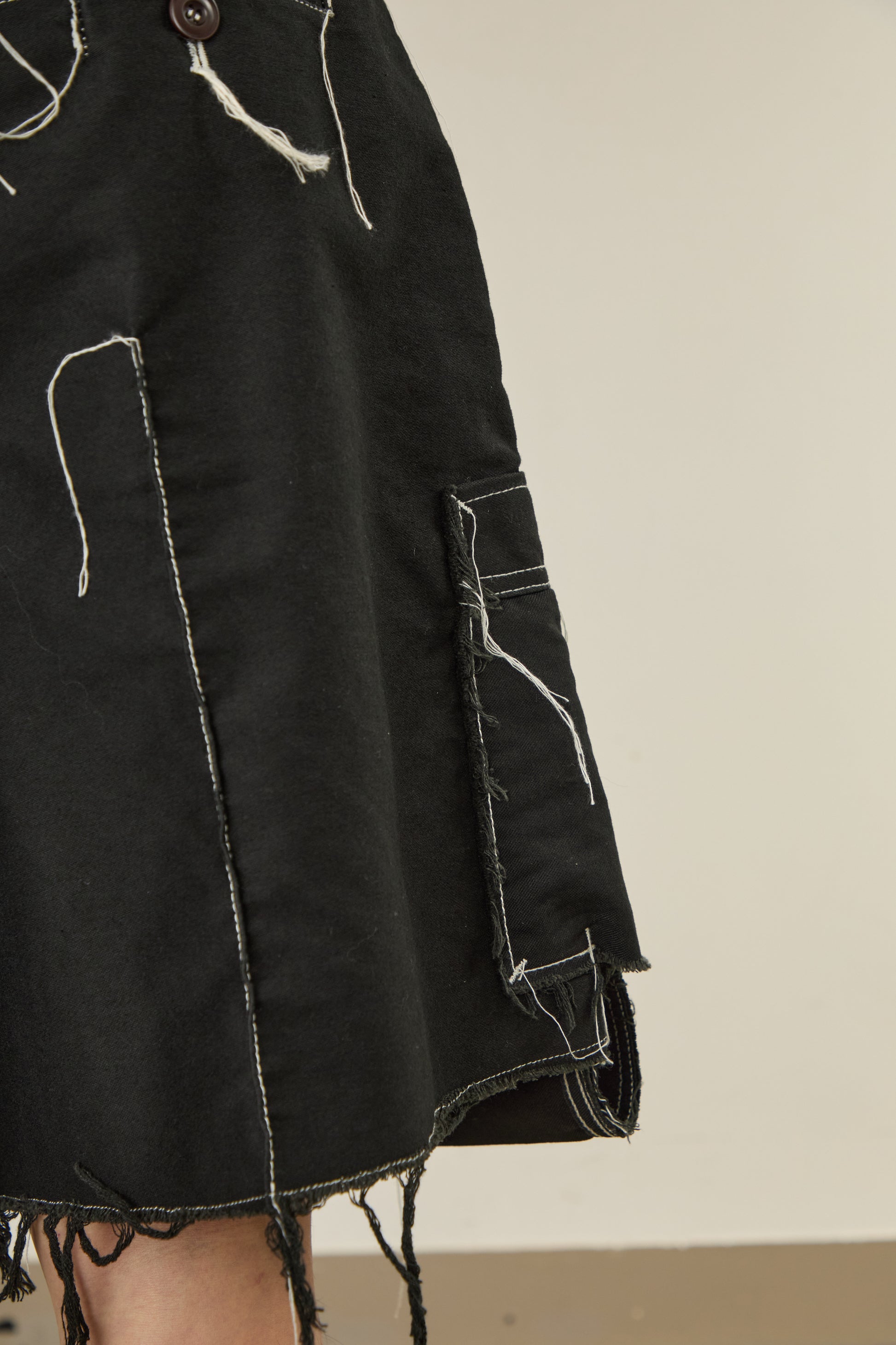 延長された前裾が前見頃に重なった、レイヤードデザインが特徴。