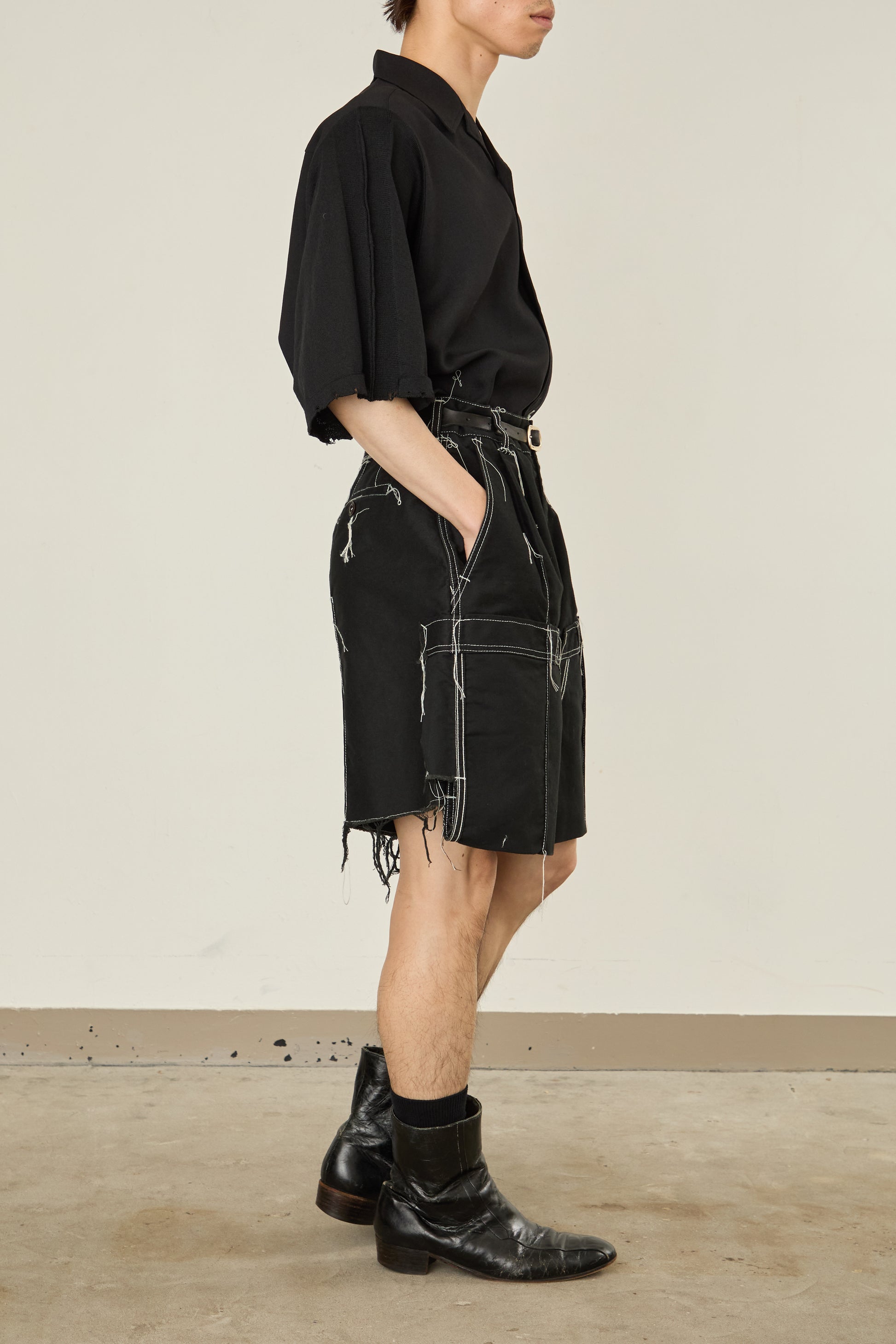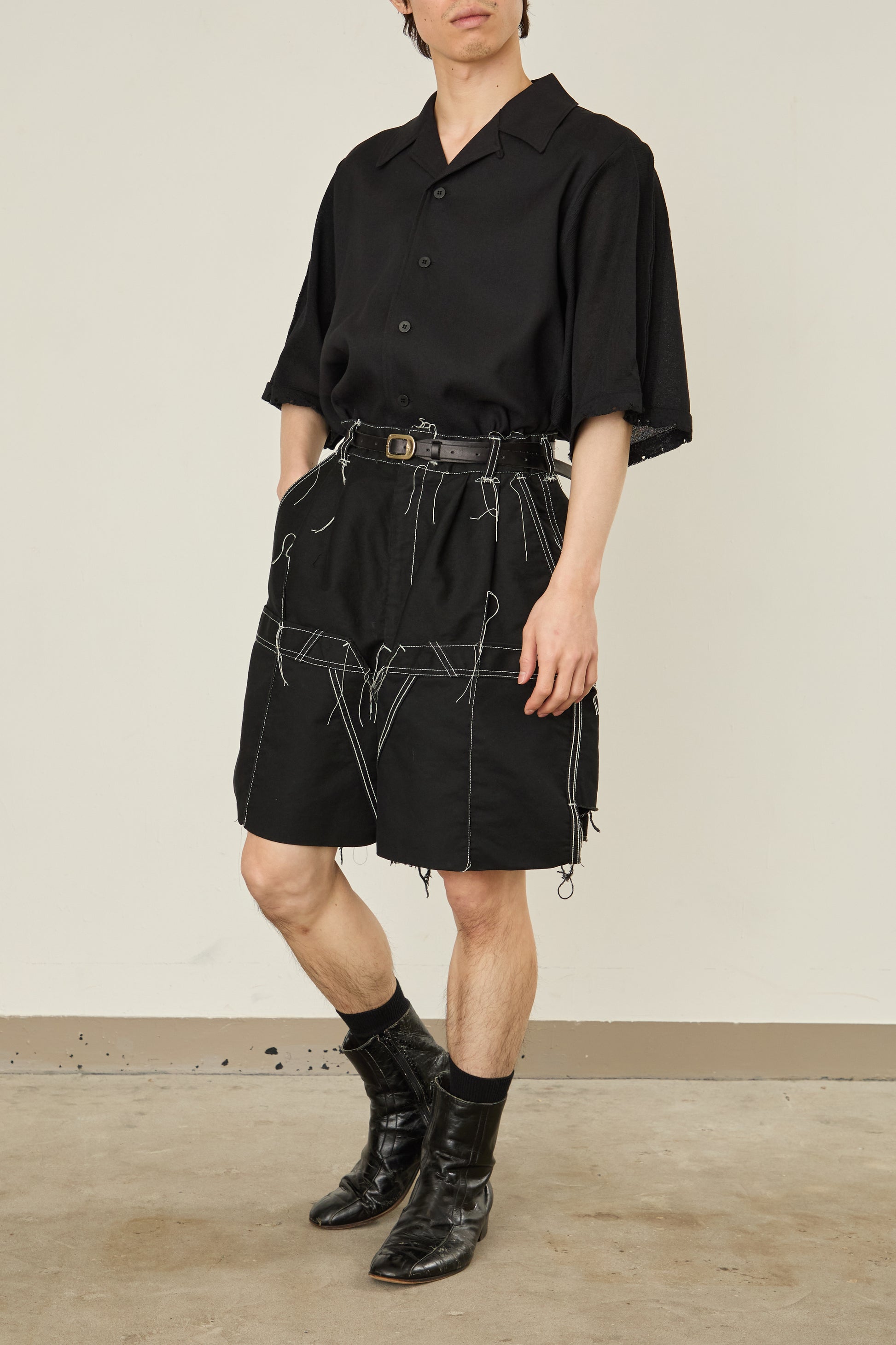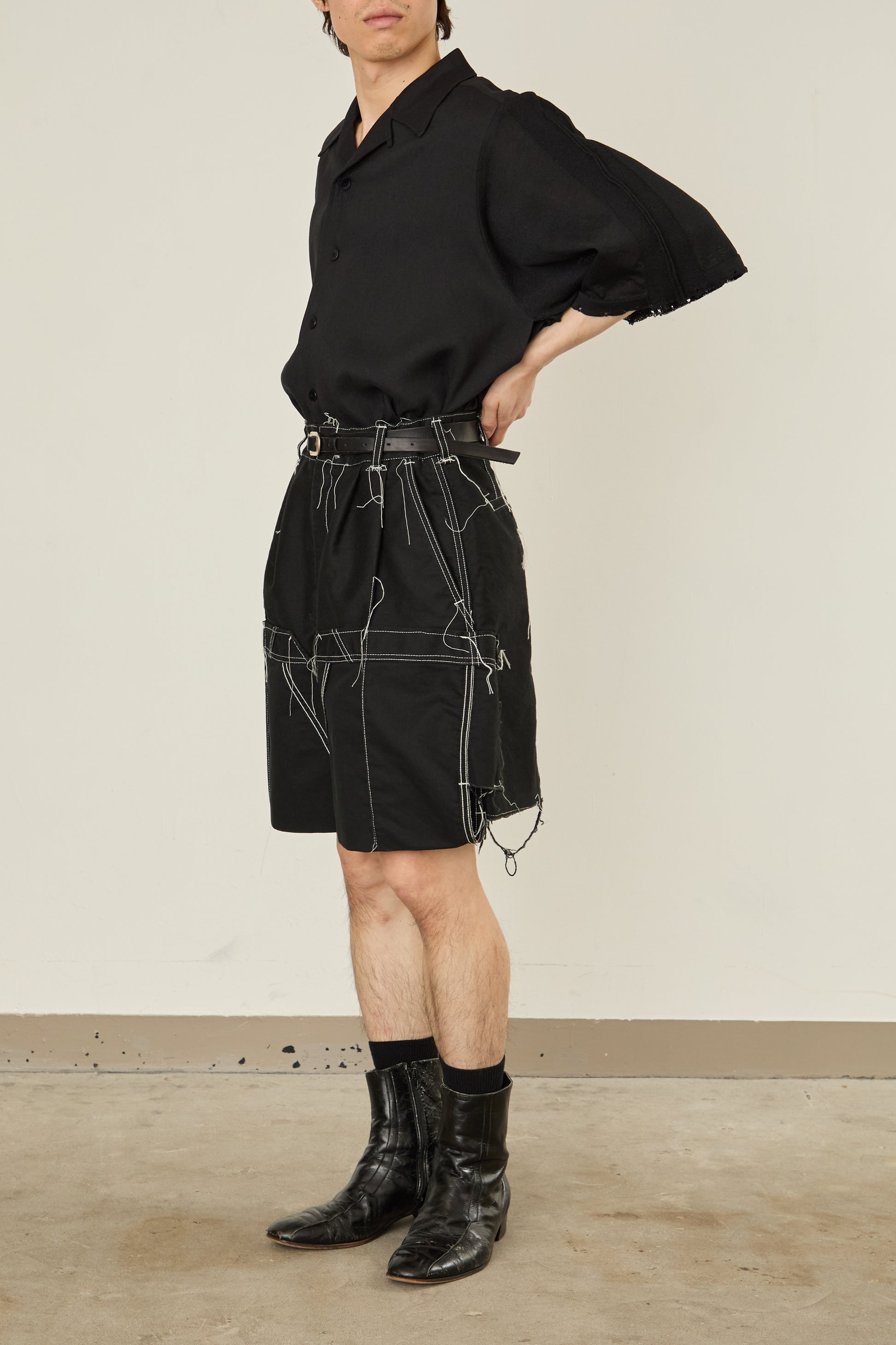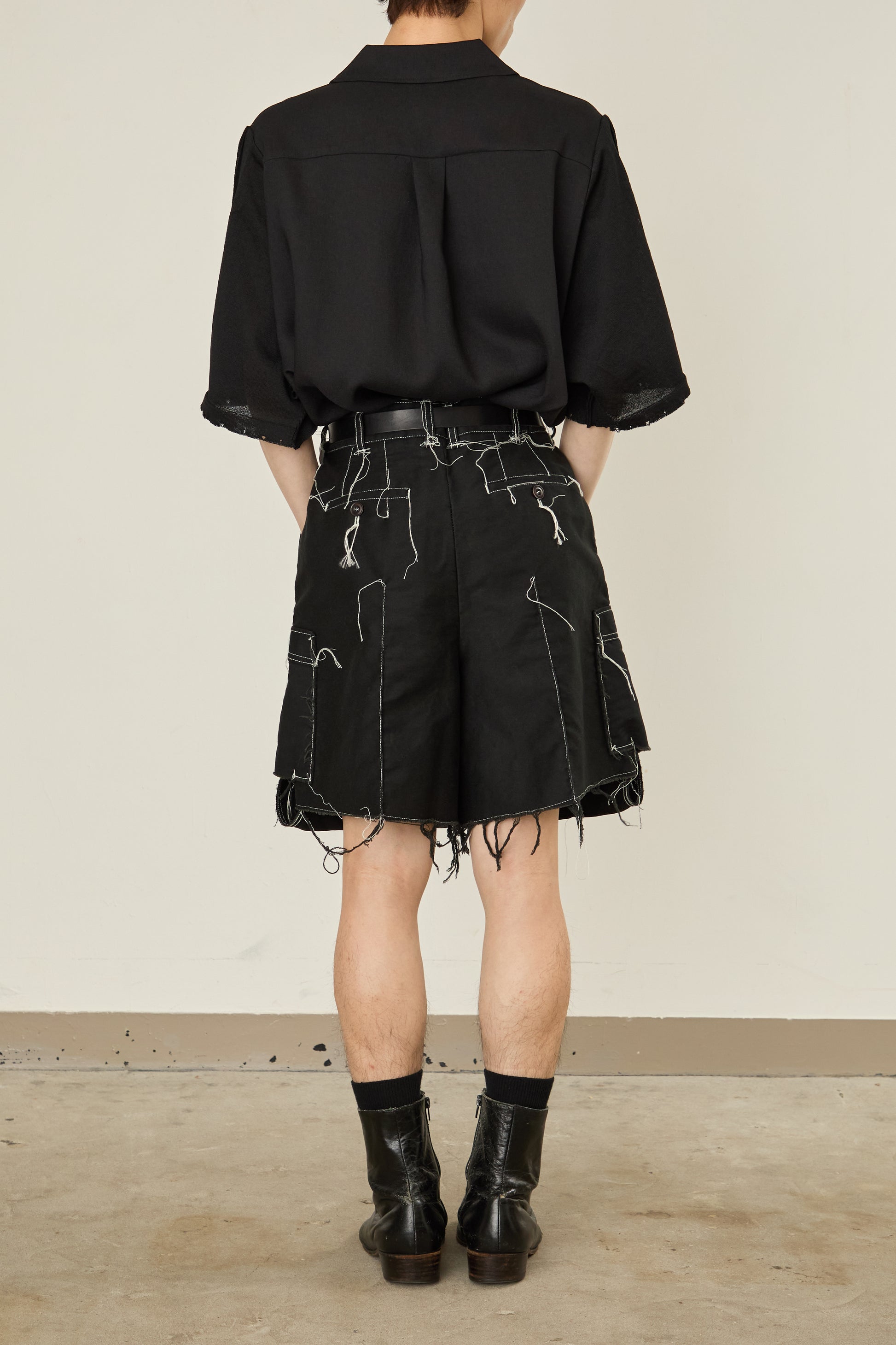 延長された前裾が前見頃に重なった、レイヤードデザインが特徴。