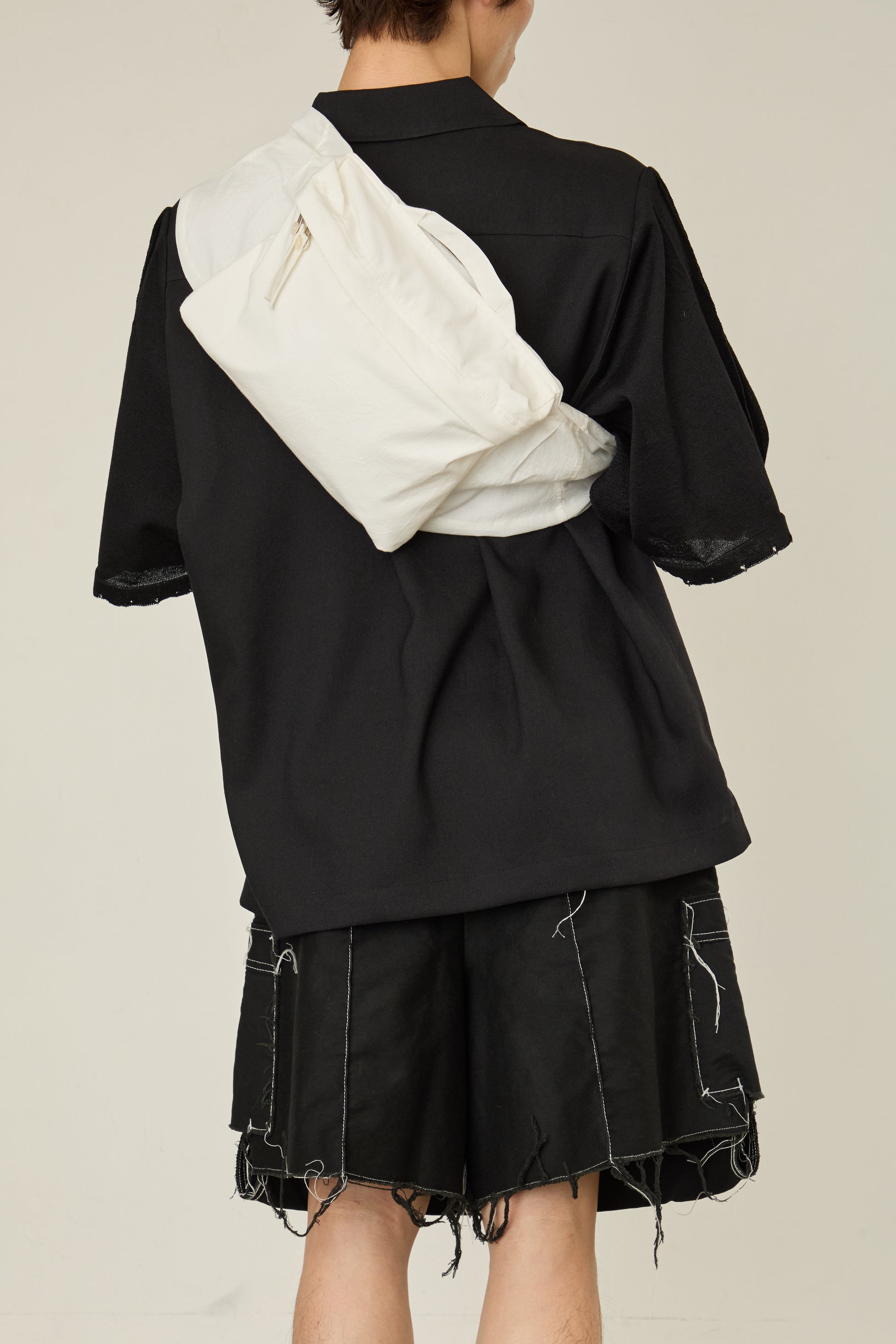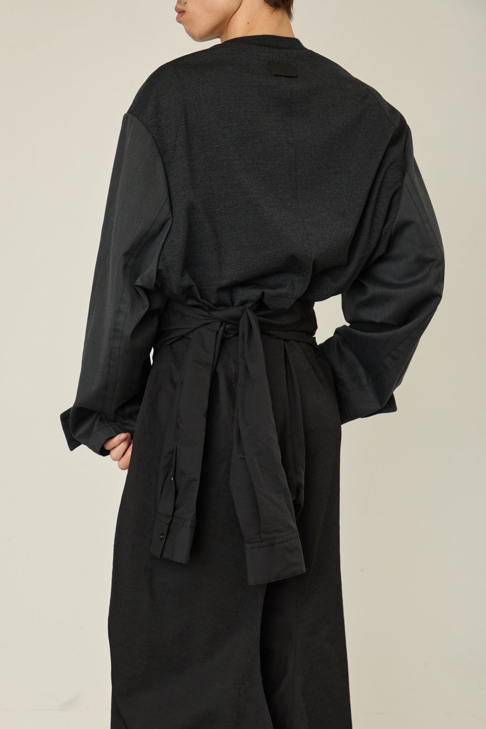 シャツ袖を、体に巻き、結んで固定するように使用します。