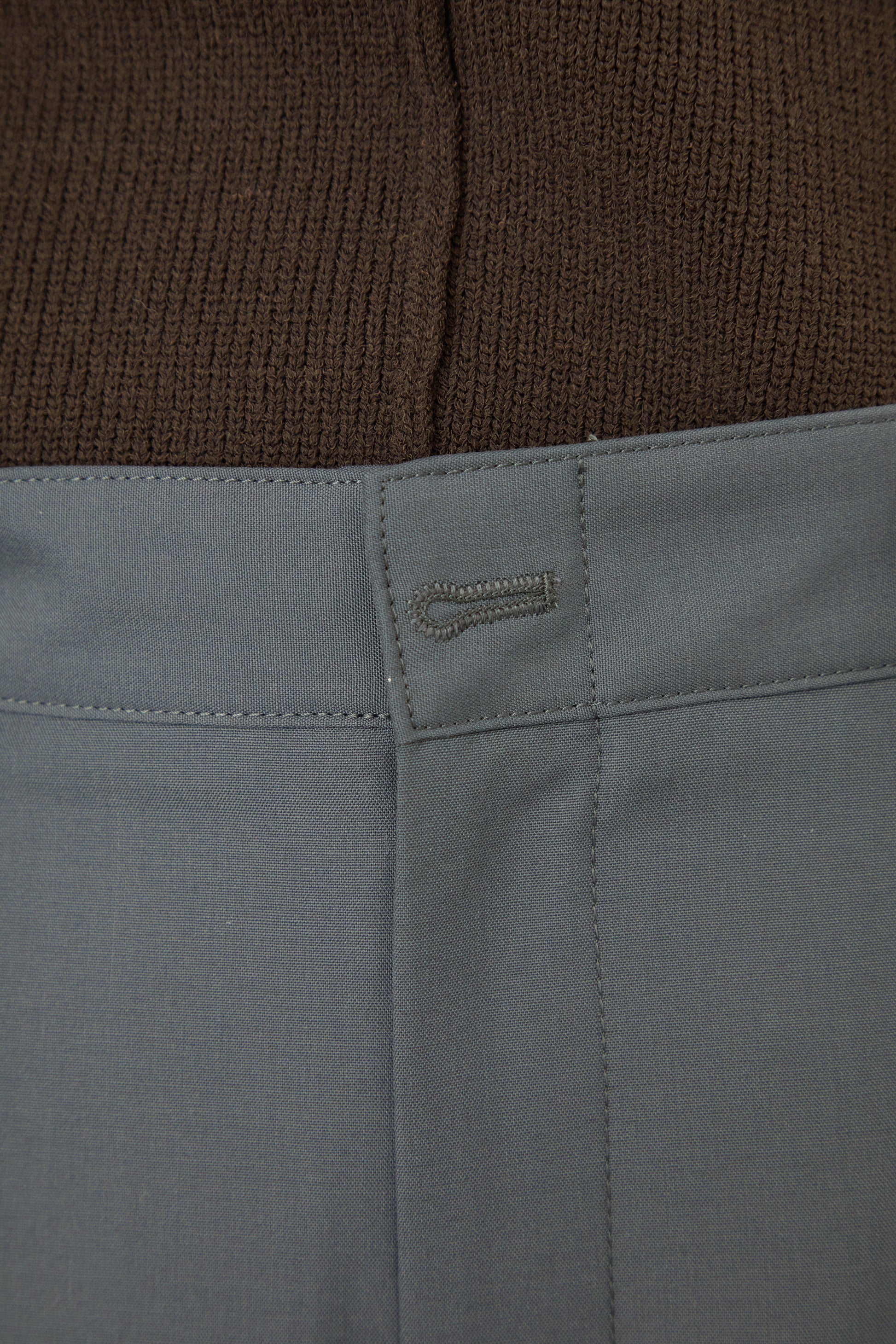 学⽣や鉄道員、警察官などが実際に着⽤している制服素材の⽷を使⽤し、ブランド独⾃の再解釈で提案されるUN( I )FORM シリーズのスラックスパンツとしての、ペインターズパンツ。