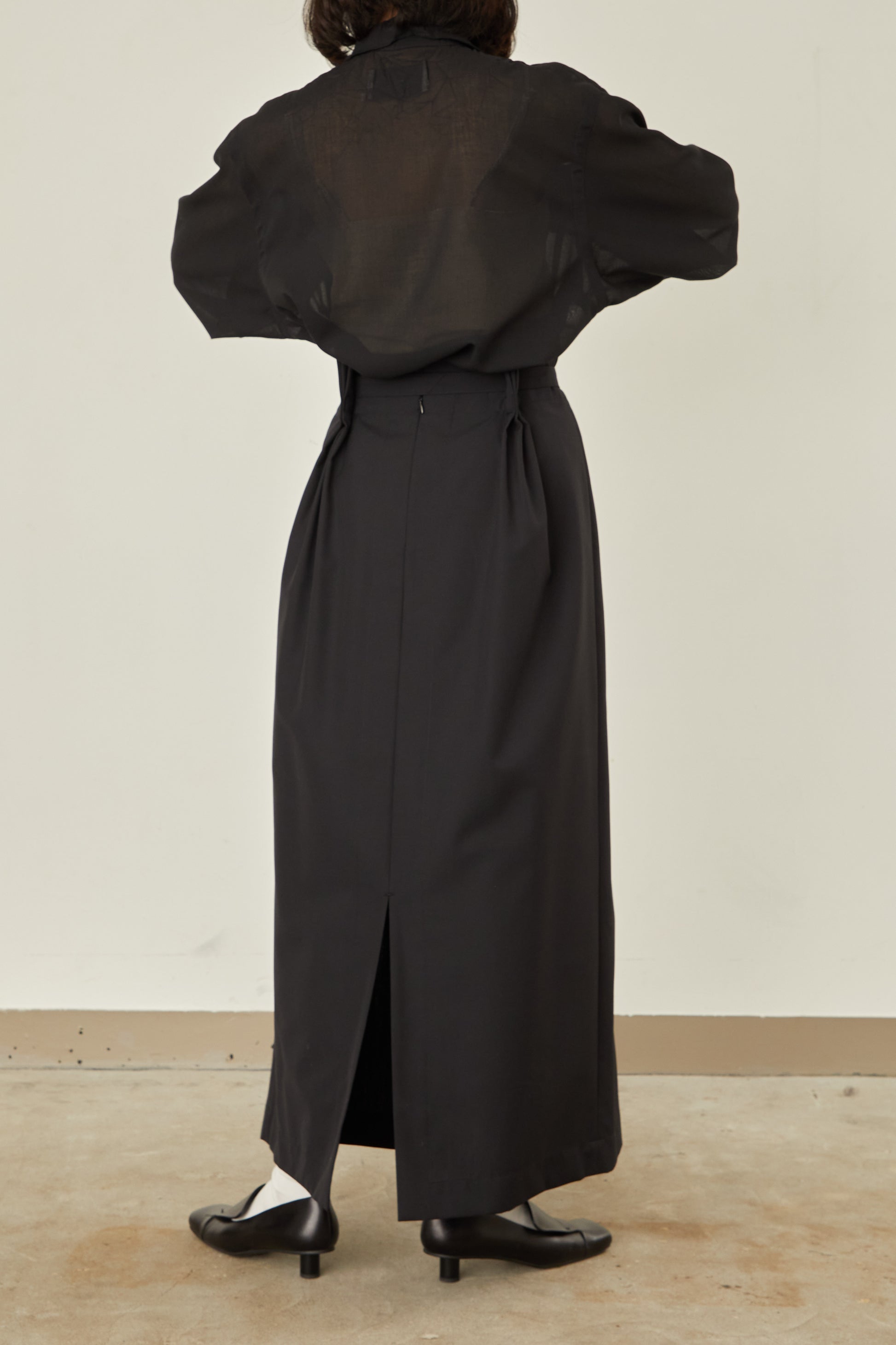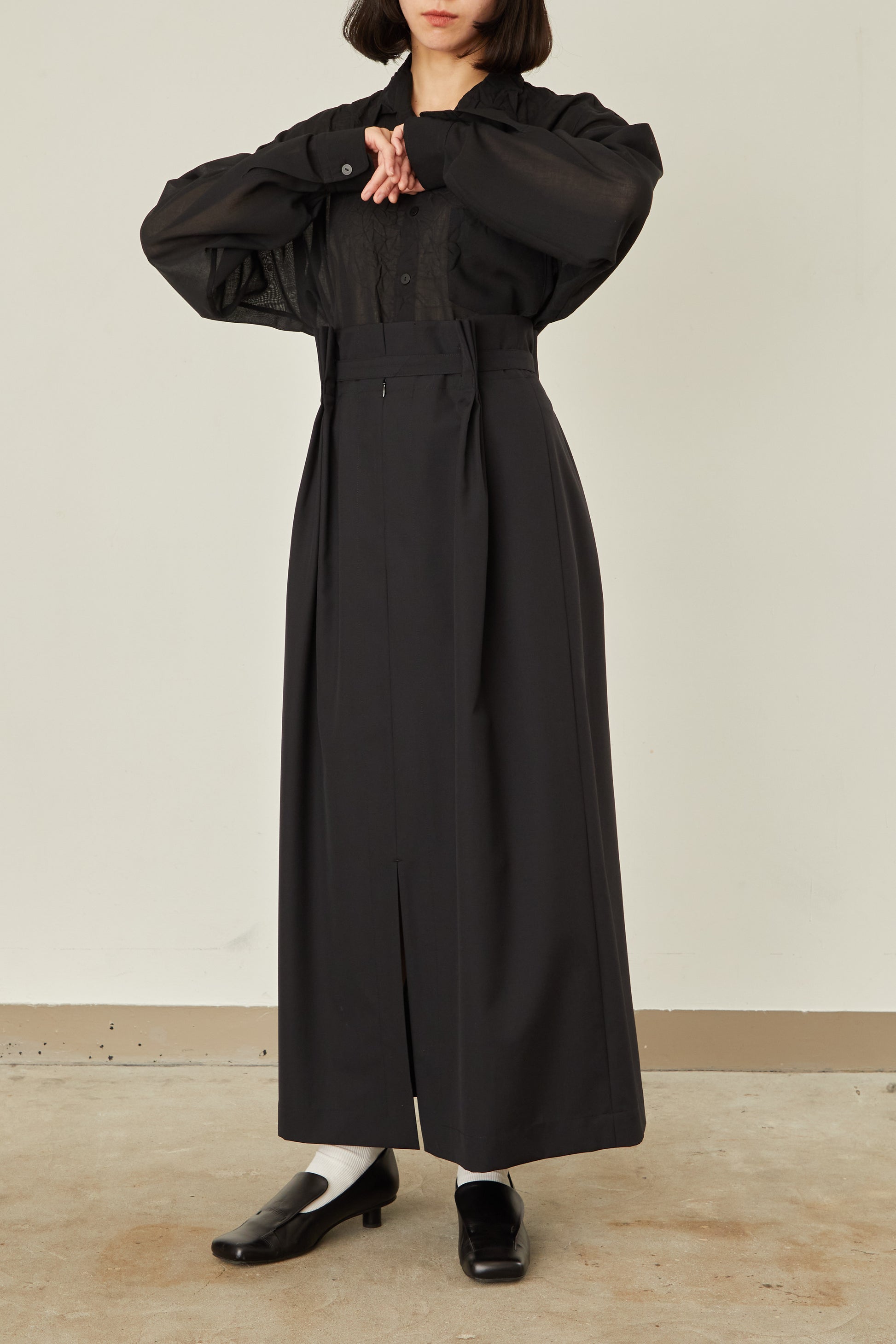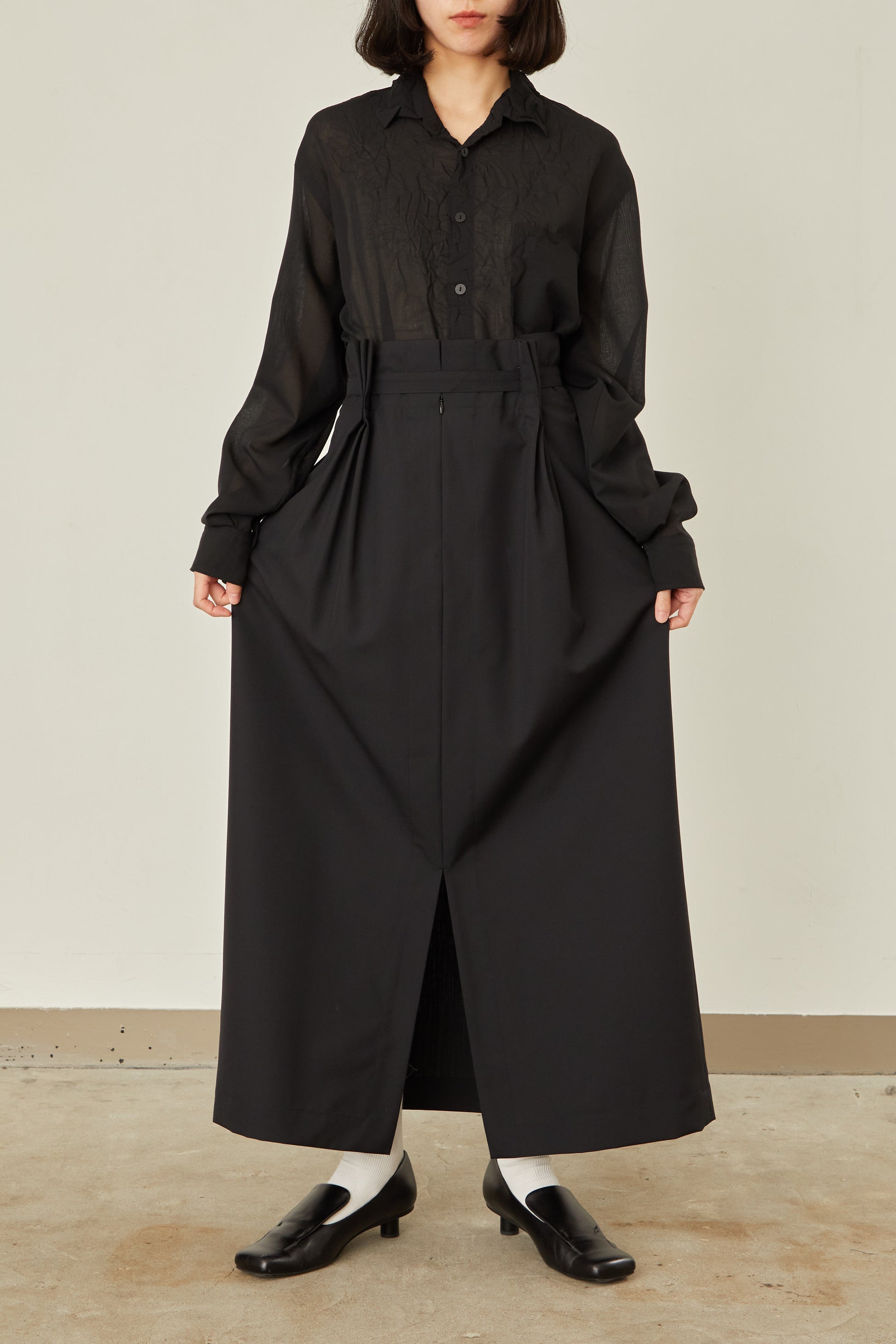 ブランド独⾃の再解釈で提案されるUN( I )FORM シリーズの PLEATS SKIRT 。