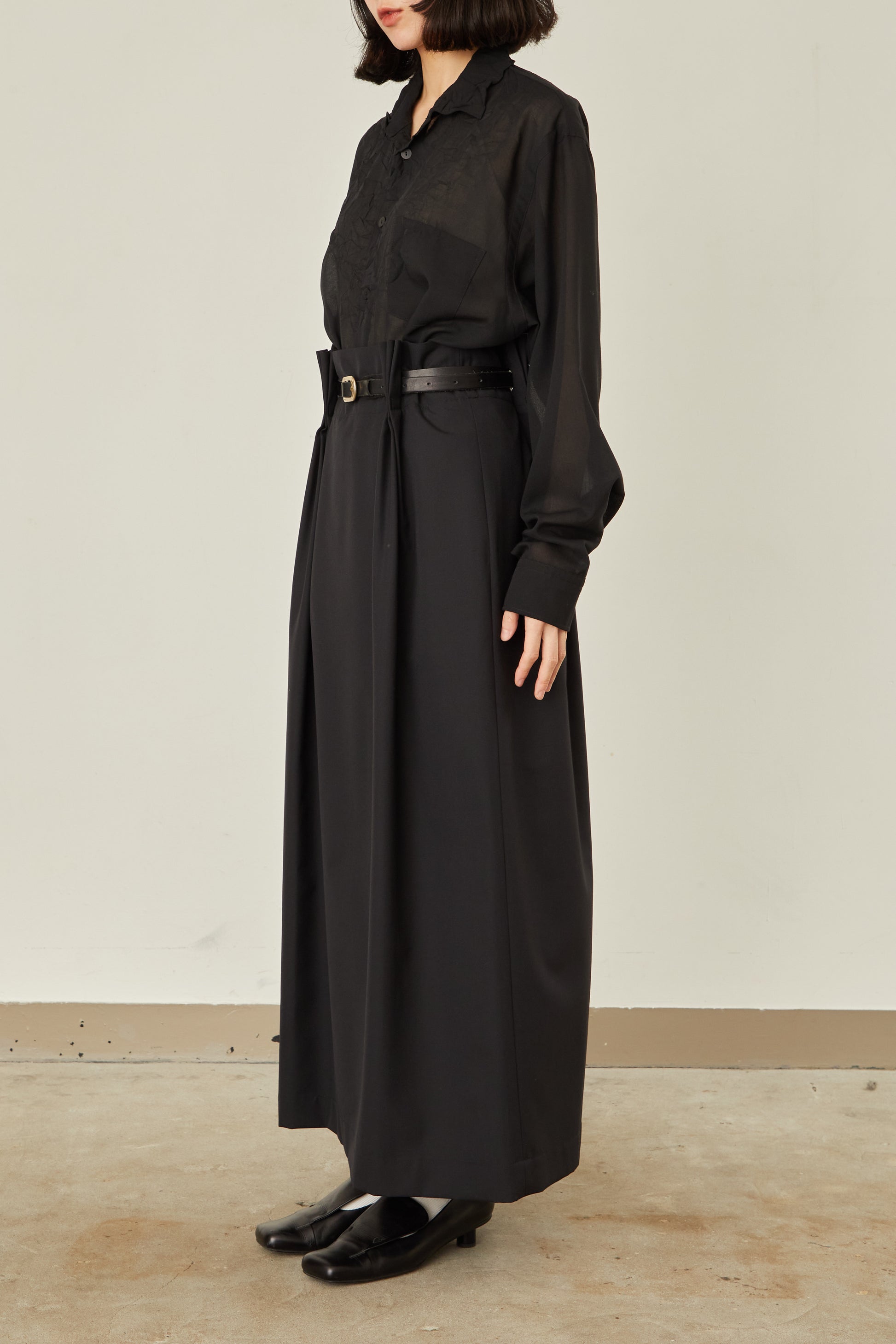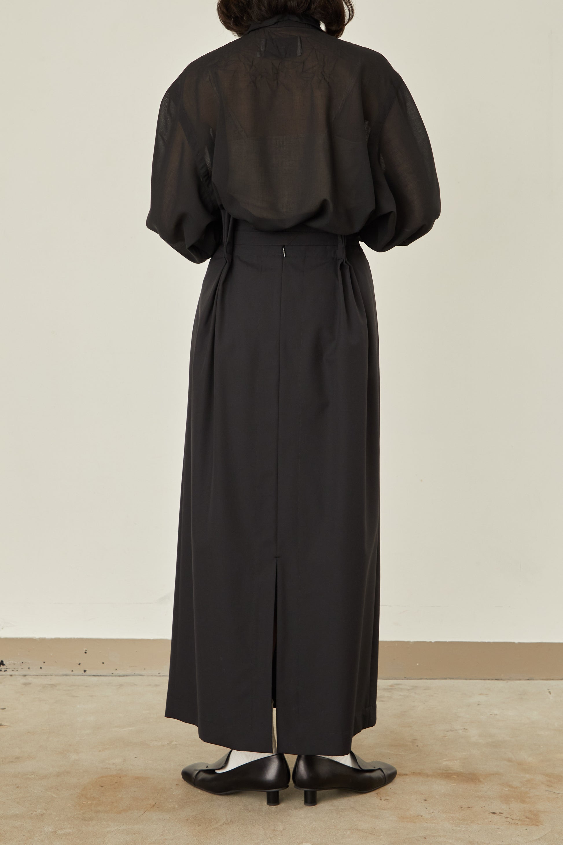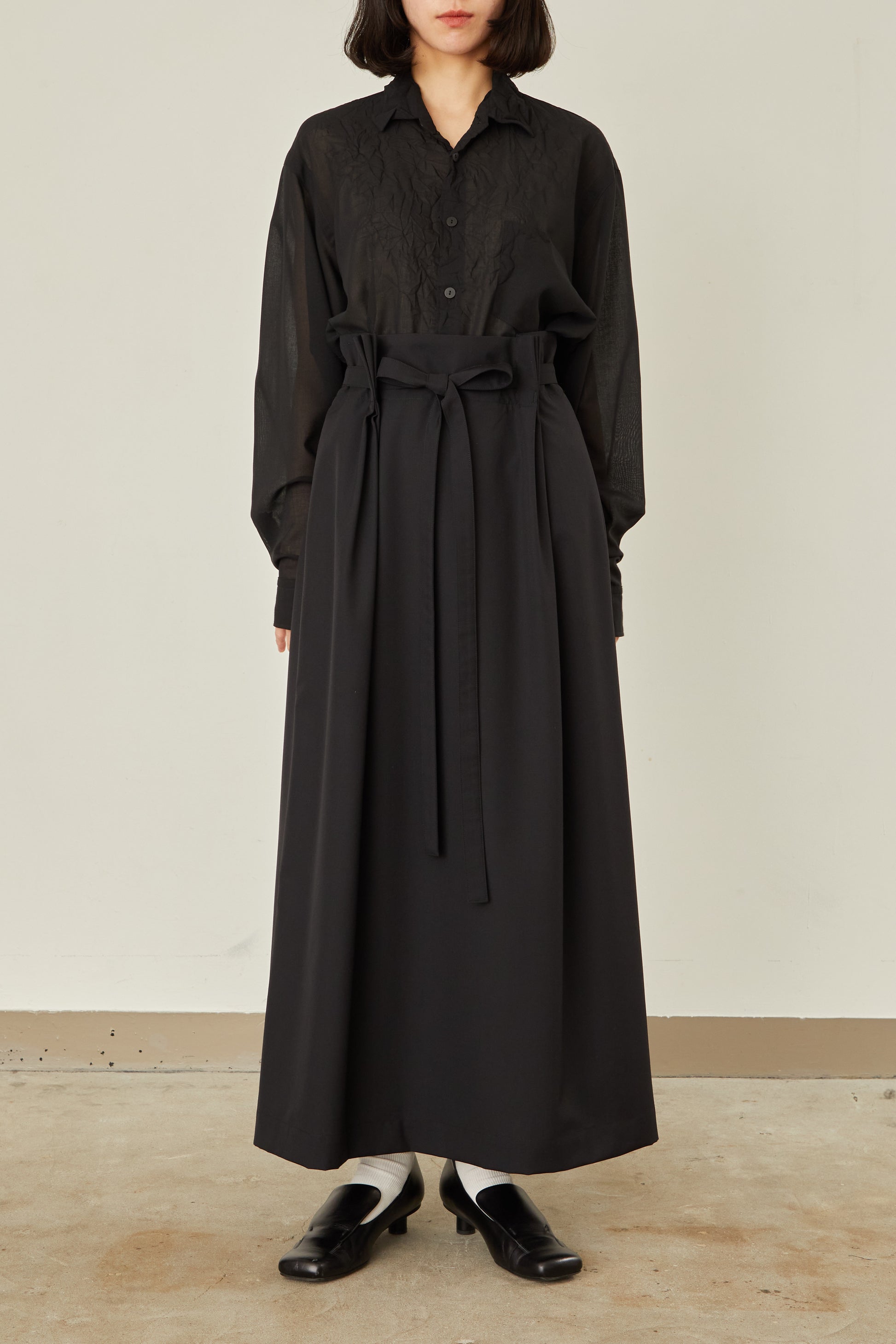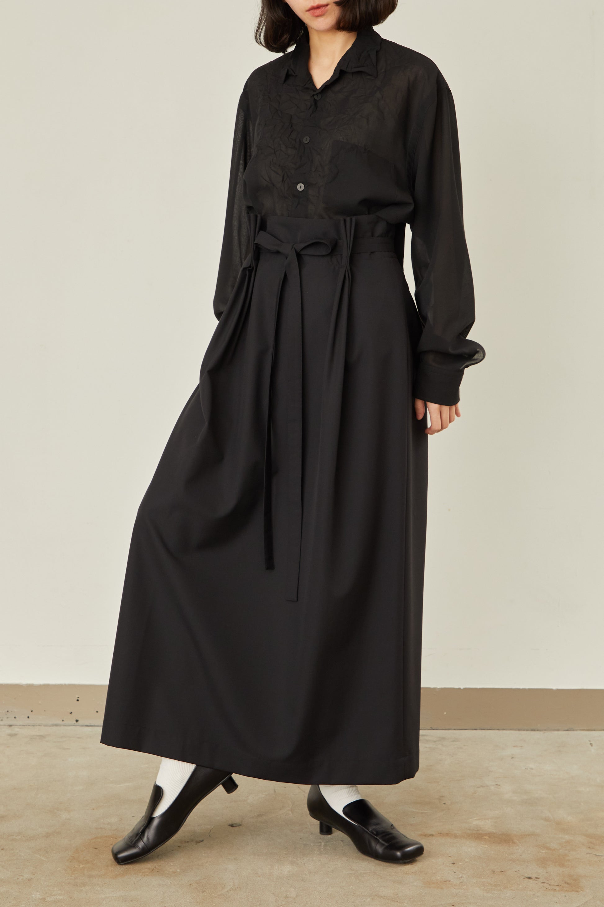 ブランド独⾃の再解釈で提案されるUN( I )FORM シリーズの PLEATS SKIRT 。